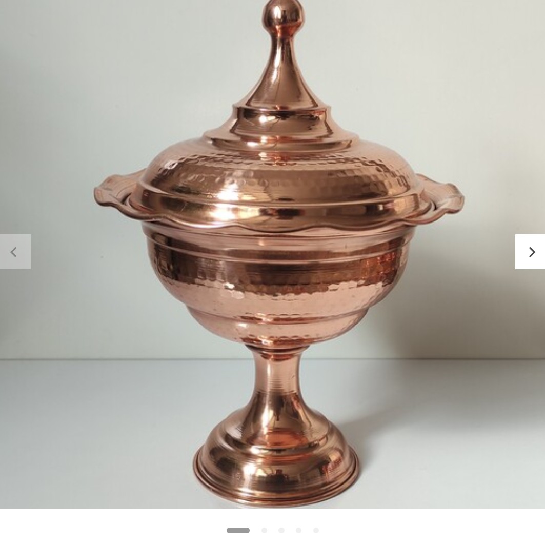 شکلات خوری دربدار مسی زنجانیها پذیرایی از مهمان یکی از موضوعاتی است که در فرهنگ ایرانی جایگاه ویژهای دارد. چای، میوه، شیرینی و شکلات و آجیل از مرسومترین اقلام پذیرایی در بین ما ایرانیان هستند. یک ظرف شکلات خوری مسی میتواند جلوهی زیبایی به میز پذیرایی خانهمان بدهد. ظرفی که به دست هنرمندان خلاق و باسلیقهی زنجانی ساختهشده و میتواند نظر علاقهمندان به هنرهای سنتی را به خود جلب کند. این محصول دارای پایه است که باعث بالاتر آمدن آن از سطح میز میشود. قسمت خارجی شکلات خوری به رنگ مسی است، داخل آن لعاب قلع دارد و نقرهای رنگ است. این ظرف زیبا می تواند به عنوان گز خوری، شکلات خوری و ... مورد استفاده قرار گیرد.