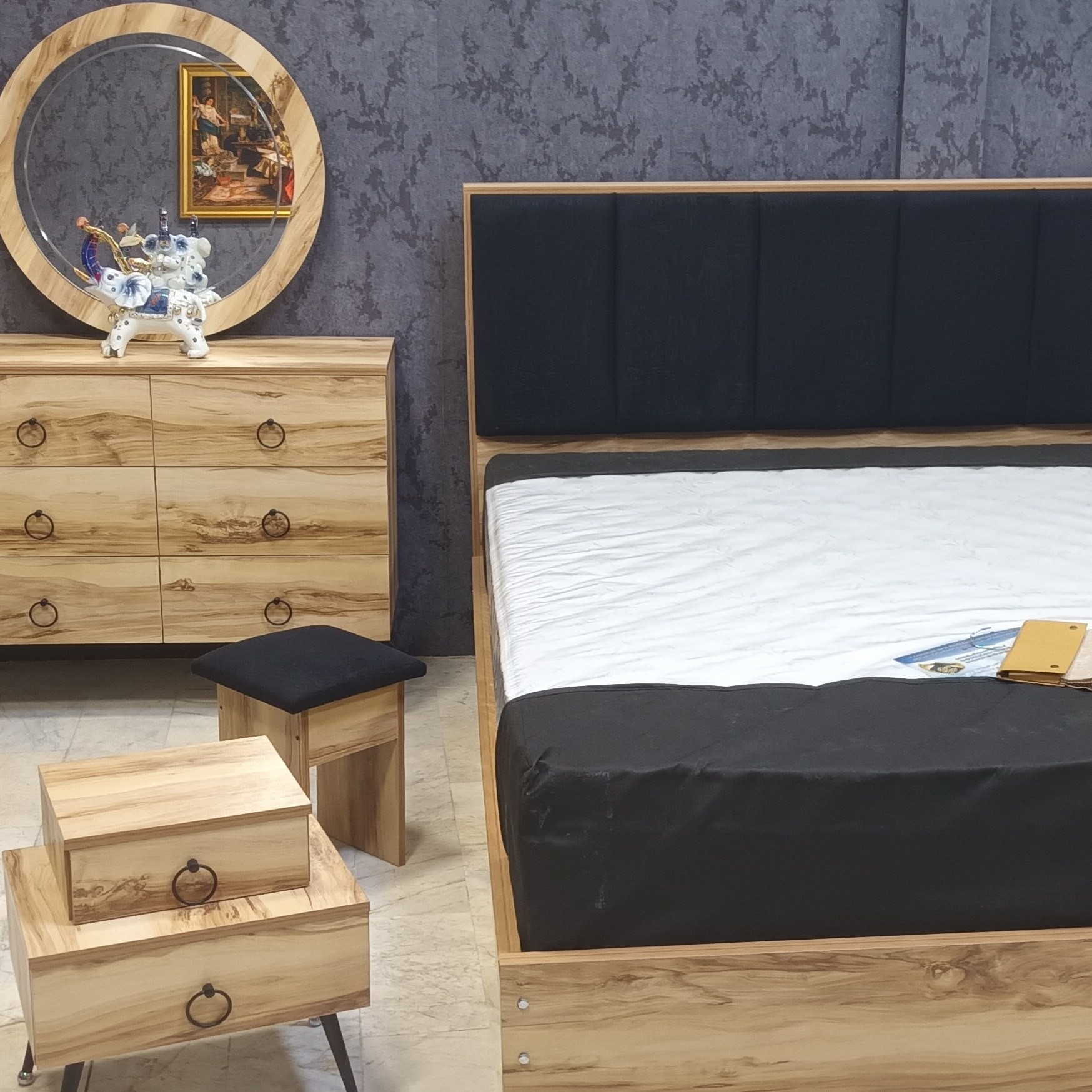 تخت خواب دونفره همراه با لوازم تخت میزآرایش و دوعدد پاتختی هس ارسال به سراسر کشور جنس شرکتی تضمینی کیفیت بسیار عالی