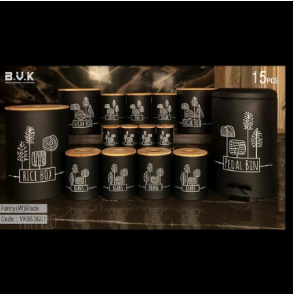 سرویس ۱۵ پارچه bvk جنس ورق گالوانیزه مقاوم در برابر زنگ زدگی ورق ضخیم رنگ کوره ای ضد خش و سایش درب چوبی جدید دو سال ضمانت شرکت bvk سرویس شامل ۱ عدد سطل برنج ۱ عدد سطل زباله پدالدار ۱ عدد سطل قند ۱ عدد سطل شکر ۱ سرویس ادویه ۴ عددی ۴ عدد قوطی حبوبات ۳ عدد پاسماری
