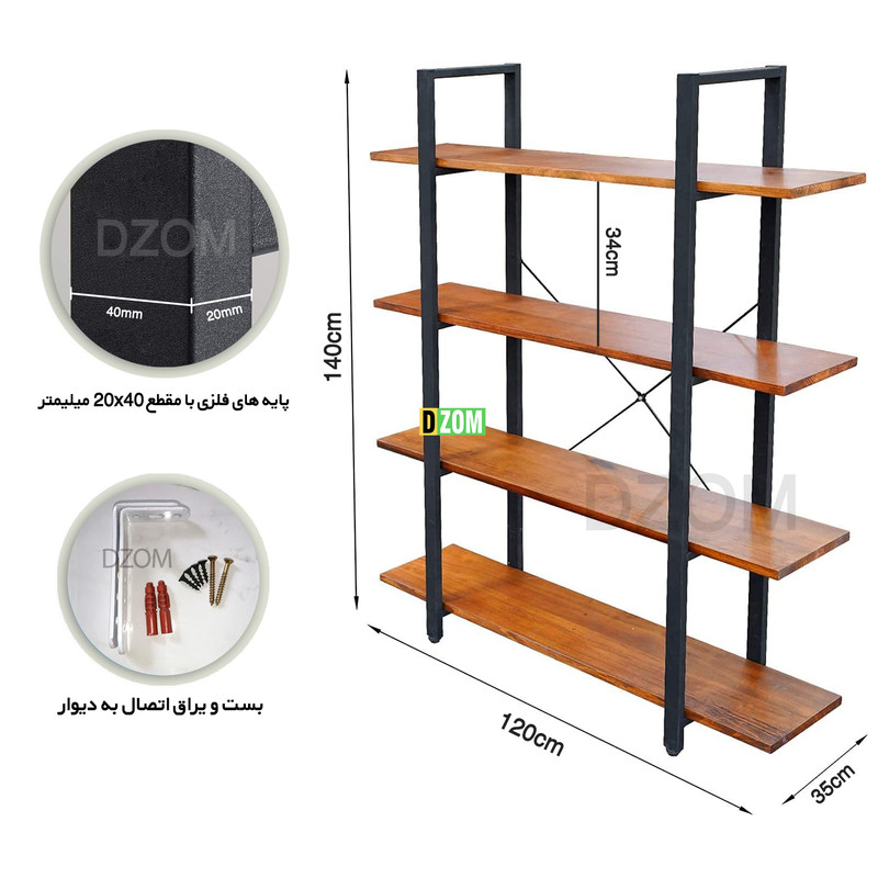 شلف دیزم DZom مدل SLF-43Z91-120BRN محصولی سبک، شیک و در عین حال جذاب و کارآمد از سری تولیدات دیزم میباشد. این محصول از پایه های فلزی با مقطع 20x40 میلیمتر و رنگ رویه الکترواستاتیک با ماندگاری و دوام بالا ساخته شده است. همچنین پایه های پیچی، قابلیت تنظیم نسبت به سطح زمین را دارد تا بهترین تراز جهت جلوگیری از تکان خوردن را ایجاد نماید. صفحه محصول از جنس MDF درجه یک برجسته طرح چوب به رنگ قهوه ای می باشد. این محصول با طول 120cm، عرض 35cm و ارتفاع 140cmعرضه می شود. به این نکته توجه شود که تنوع رنگ انتخابی کالا تنها مربوط به رنگ پایه های فلزی میباشد و محصول به صورت کاملا مونتاژ شده و آماده استفاده برای مشتریان ال می گردد. توصیه میشود جهت حفظ ایمنی و ثبات بیشتر، محصول در یک یا دو نقطه به دیوار پیچ گردد.(یراق اتصال داخل بسته بندی موجود است).