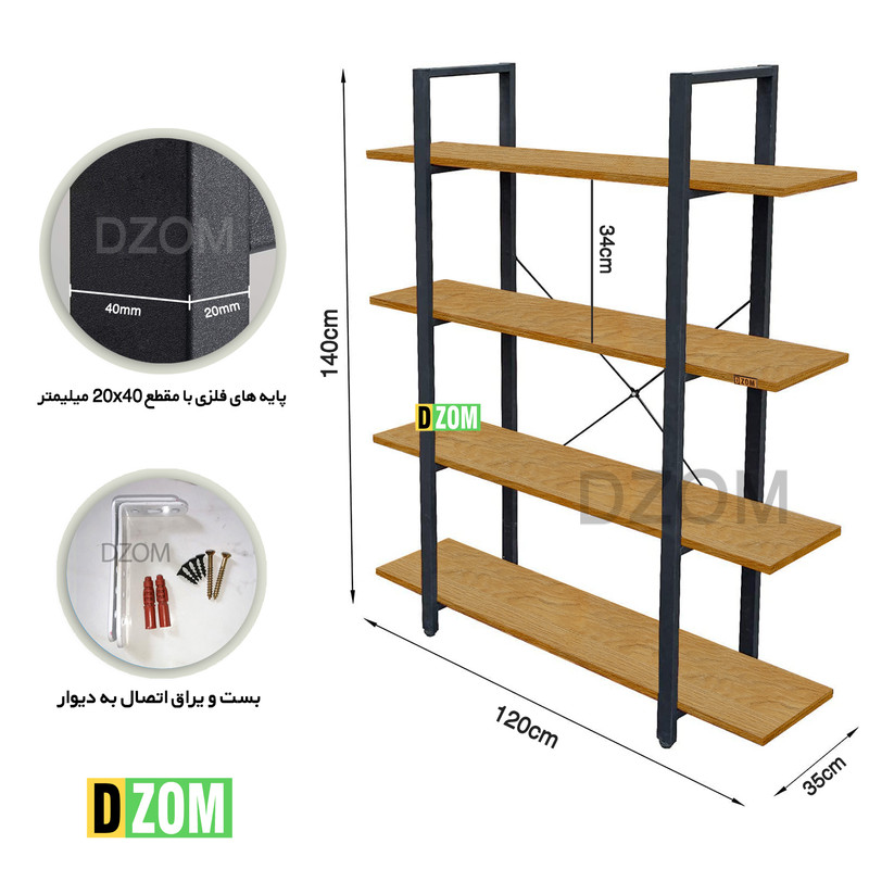 شلف دیزم DZom مدل SLF-43Z91-120LIGHT محصولی سبک، شیک و در عین حال جذاب و کارآمد از سری تولیدات دیزم میباشد. این محصول از پایه های فلزی با مقطع 20x40 میلیمتر و رنگ رویه الکترواستاتیک با ماندگاری و دوام بالا ساخته شده است. همچنین پایه های پیچی، قابلیت تنظیم نسبت به سطح زمین را دارد تا بهترین تراز جهت جلوگیری از تکان خوردن را ایجاد نماید. صفحه محصول از جنس MDF درجه یک برجسته طرح چوب به رنگ قهوه ای روشن می باشد. این محصول با طول 120cm، عرض 35cm و ارتفاع 140cmعرضه می شود. به این نکته توجه شود که تنوع رنگ انتخابی کالا تنها مربوط به رنگ پایه های فلزی میباشد و محصول به صورت کاملا مونتاژ شده و آماده استفاده برای مشتریان ال می گردد. توصیه میشود جهت حفظ ایمنی و ثبات بیشتر، محصول در یک یا دو نقطه به دیوار پیچ گردد.(یراق اتصال داخل بسته بندی موجود است).