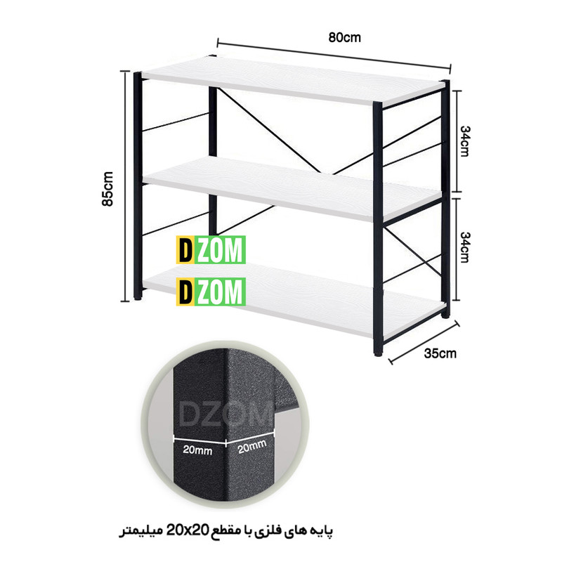 شلف دیزم DZom مدل SLF-77K12-80W محصولی سبک، شیک و در عین حال جذاب و کارآمد از سری تولیدات دیزم میباشد. این محصول از پایه های فلزی با مقطع 20x20 میلیمتر و رنگ رویه الکترواستاتیک با ماندگاری و دوام بالا ساخته شده است. همچنین پایه های پیچی، قابلیت تنظیم نسبت به سطح زمین را دارد تا بهترین تراز جهت جلوگیری از تکان خوردن را ایجاد نماید. صفحه محصول از جنس MDF درجه یک برجسته طرح چوب و به رنگ سفید می باشد. این محصول با طول 80cm، عرض 35cm و ارتفاع 85cm عرضه می شود. به این نکته توجه شود که تنوع رنگ انتخابی کالا تنها مربوط به رنگ پایه های فلزی میباشد و محصول به صورت کاملا مونتاژ شده و آماده استفاده برای مشتریان ال می گردد.