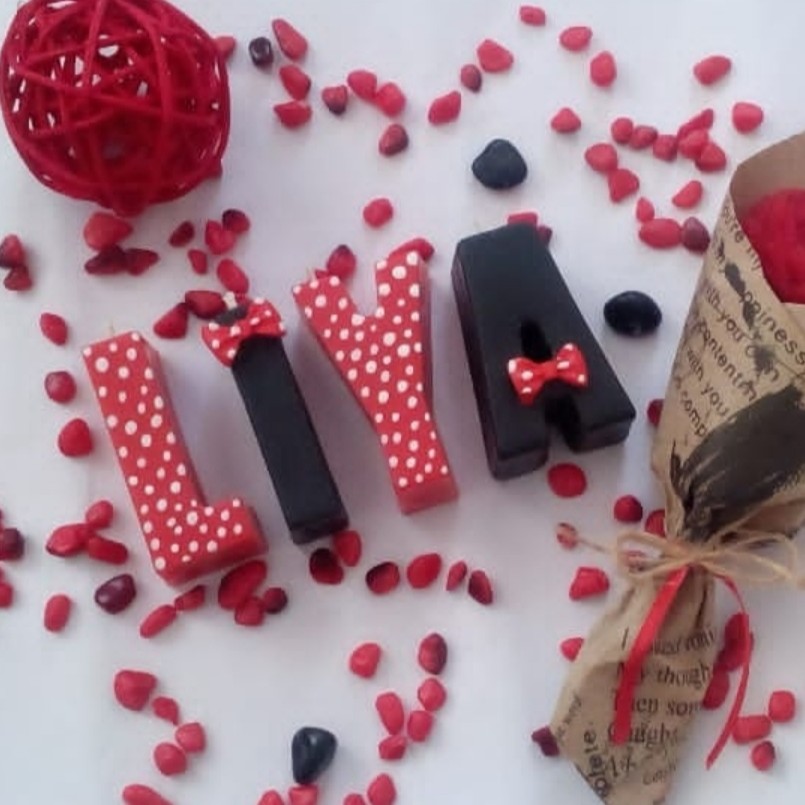 شمع حروف اسمی تهیه شده از مرغوبترین پارافین در رنگ و طرح دلخواه شما قابل اجراست کافیه قبل از ثبت سفارش پیام بزارید