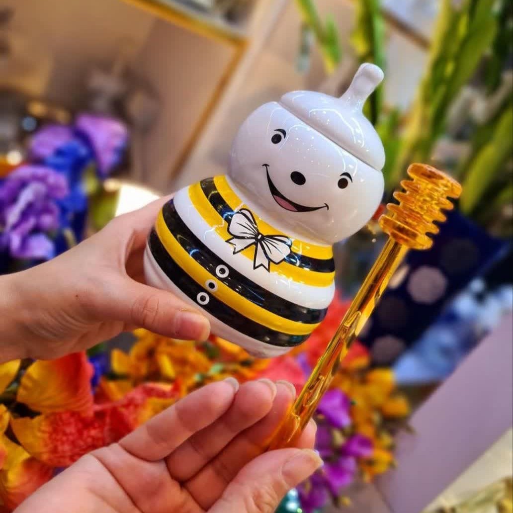 عسل خوری فانتزی بسیار زیبا و جذابمون 😍 🍯 عسل خوری طرح زنبور 🐝 🍒 کار شیک و جدید 🔹 جنس سرامیکی 📏 ارتفاع 14 سانت 🔸 فوق العاده با کیفیت 🔹 همراه قاشق چوبی 🔸 باجعبه کادویی 👌 مناسب برای استفاده عسل، مربا، شیره و.....