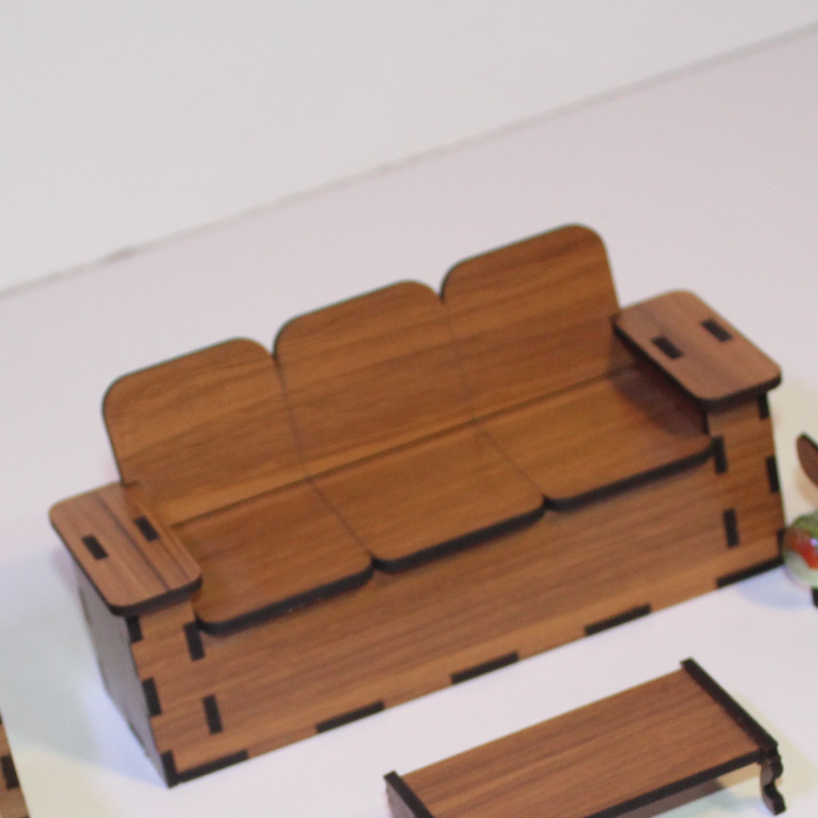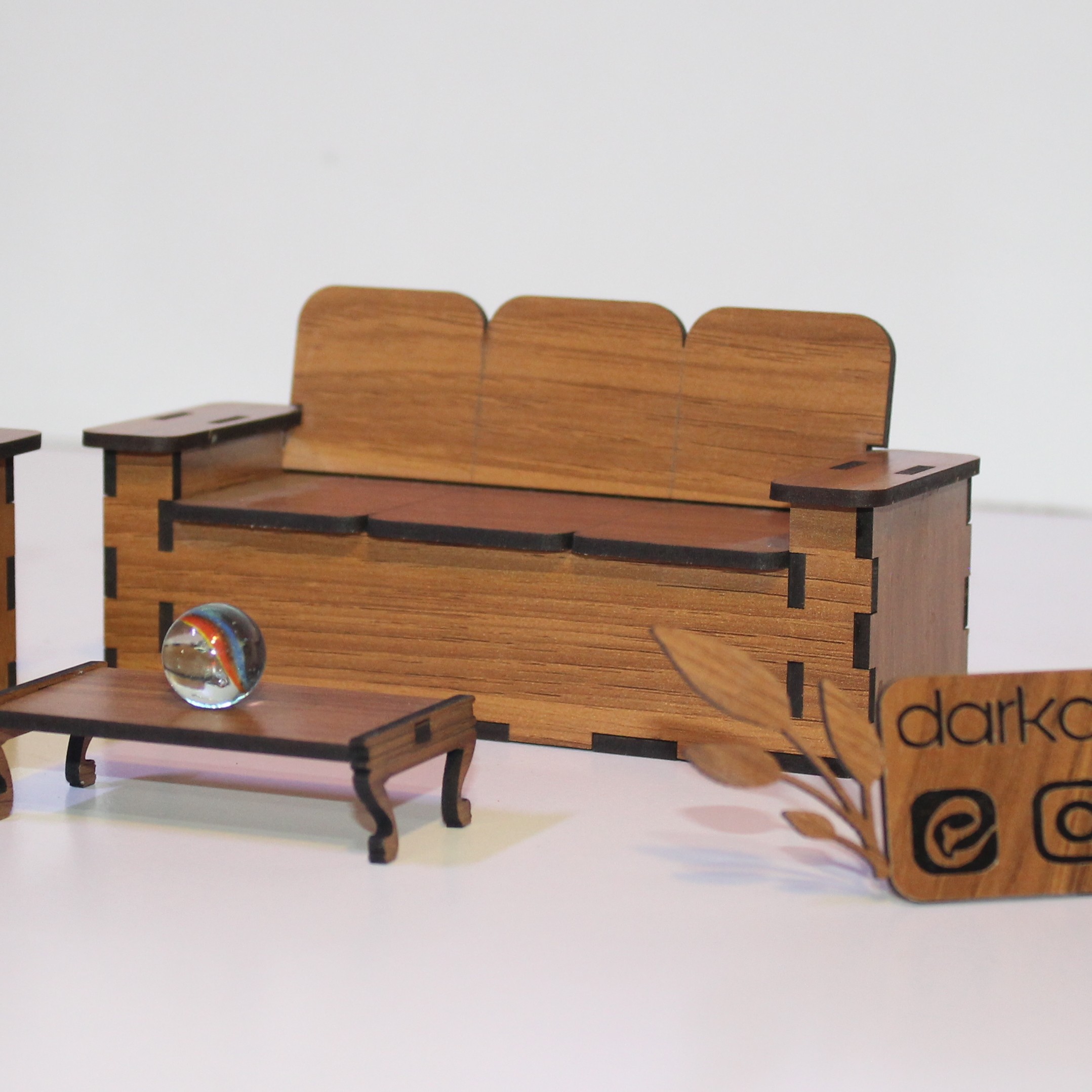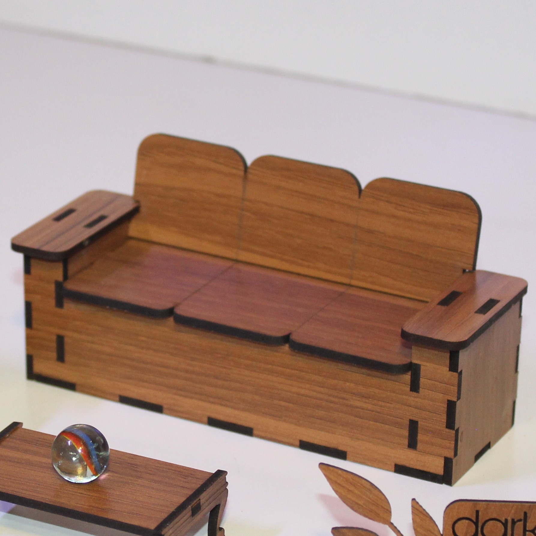 مبل سه نفره مینیاتوری چوبی مناسب دکور و بازی دارکوب استور مبلمونسرا مدل 212278