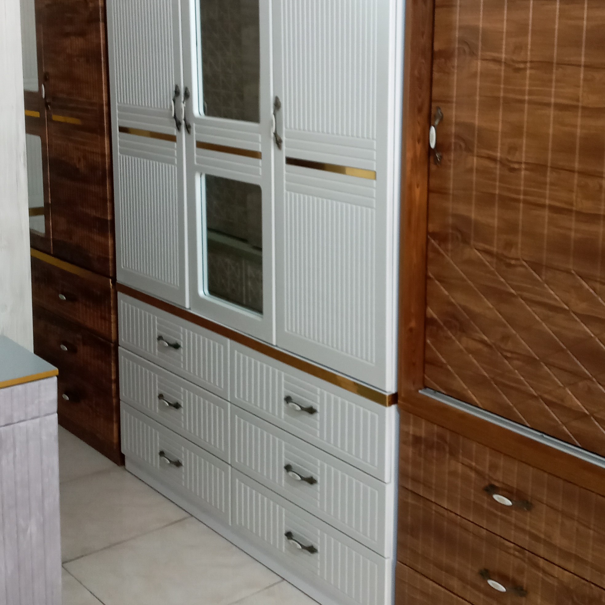 کمد لباس سیار قابل حمل در رنگ بندی سفید صدفی آنتیک کاج آنتیک طلایی طوسی سیر و ابرباد