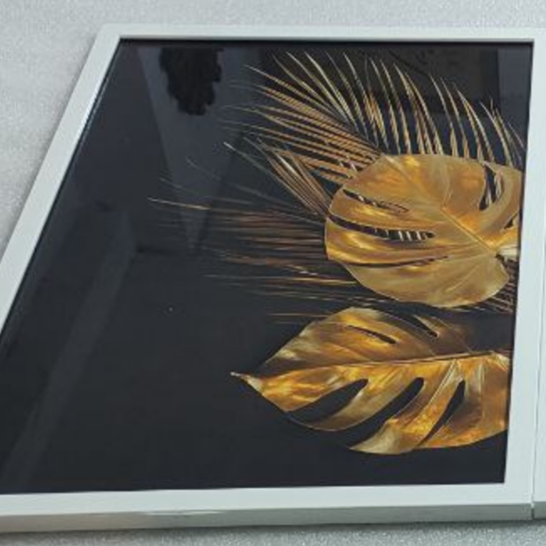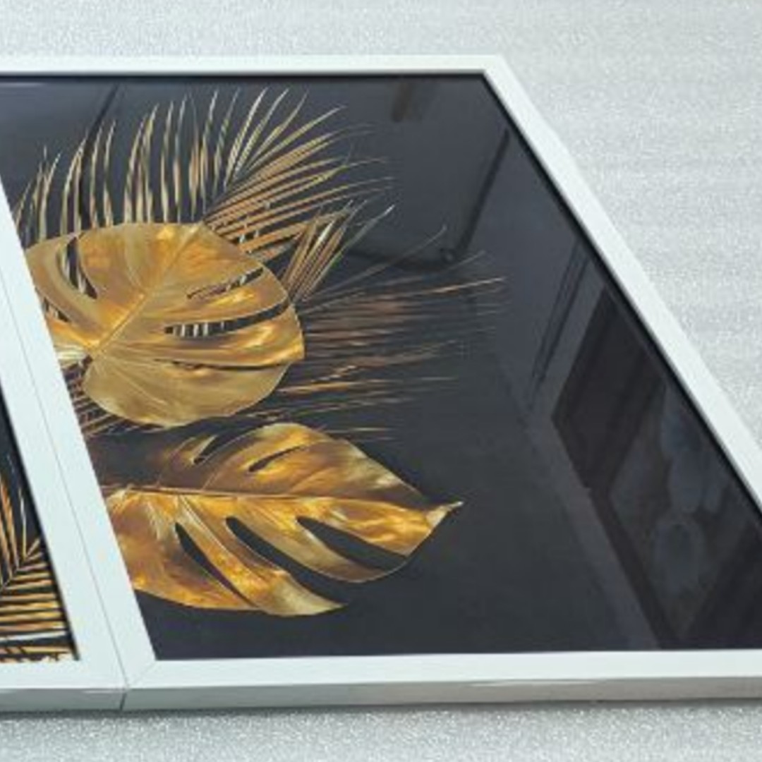تابلو دکوراتیو طرح وان یکاد طلایی وبرگ با زمینه مشکی سه تکه مبلمونسرا مدل 268062