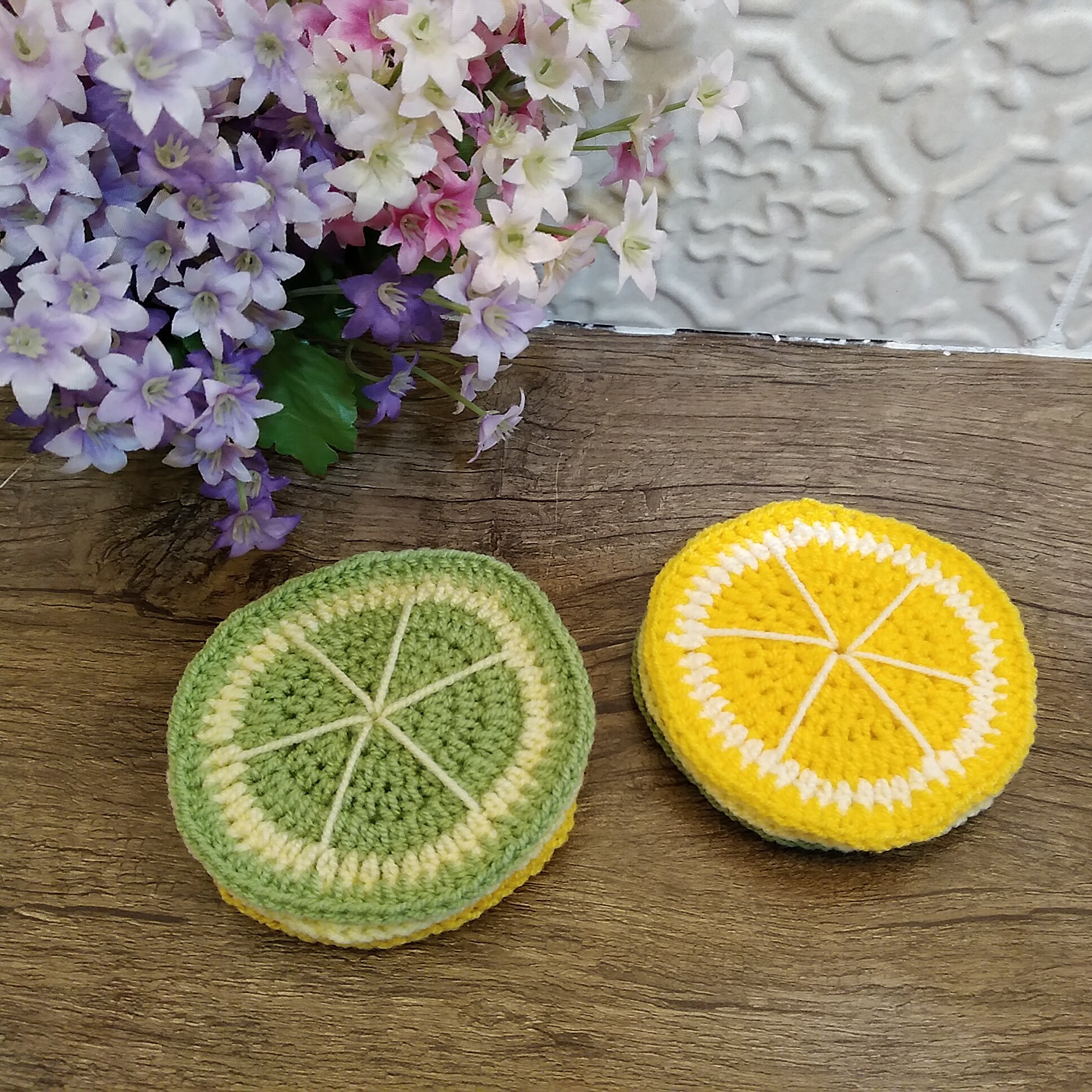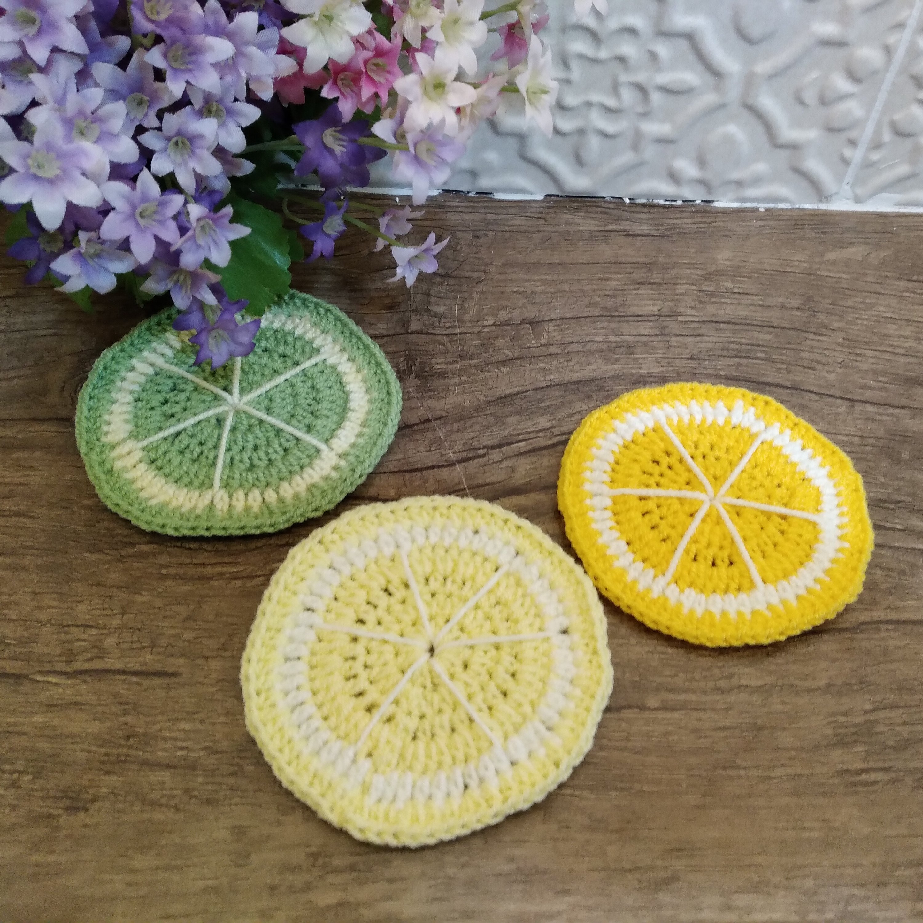 زیر لیوانی با طعم میوه های ترش و شیرین به سلیقه شما مشتری عزیز، با بافتنی های زیبا در خدمت شما هستیم، قیمت برای پک 6عددی
