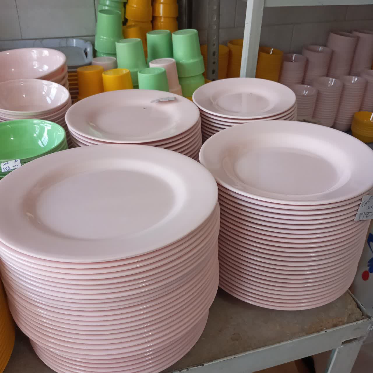سرویس غذاخوری ملامین رنگی صورتی 25 پارچه مارک شیرکوه یزد مارک اصلی تولید کارخانه یزد دارای استاندارد درجه یک مبلمونسرا مدل 289593