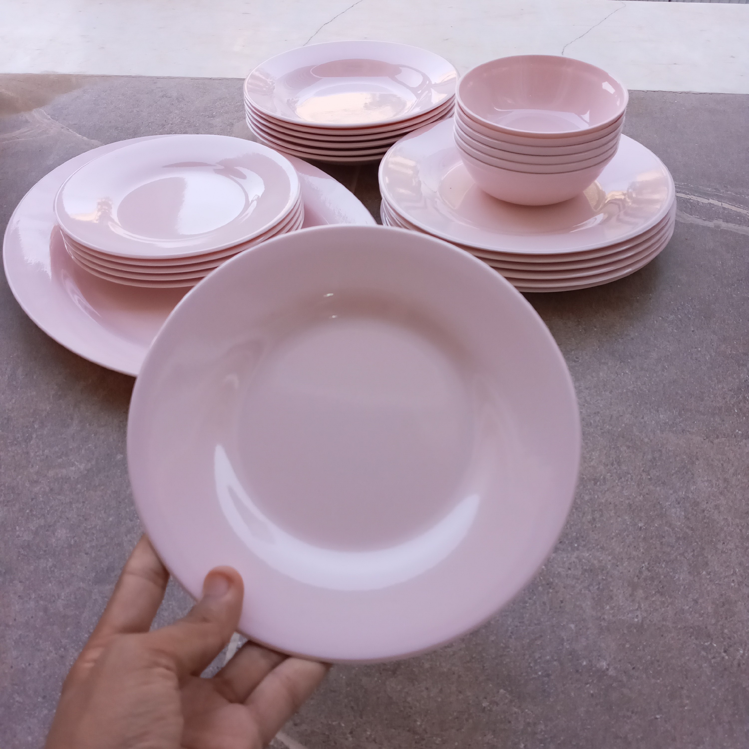 سرویس غذاخوری ملامین رنگی صورتی 25 پارچه مارک شیرکوه یزد مارک اصلی تولید کارخانه یزد سرویس 25 تیکه شامل " 6 عدد بشقاب برنج خوری 6 عدد بشقاب خورشت خوری 6 عدد بشقاب میوه خوری 6 عدد کاسه ماست خوری یک عدد دیس برنج دارای استاندارد جنس درجه یک استاندارد نشانه ی مرغوبیت کالا هست کاملا بهداشتی