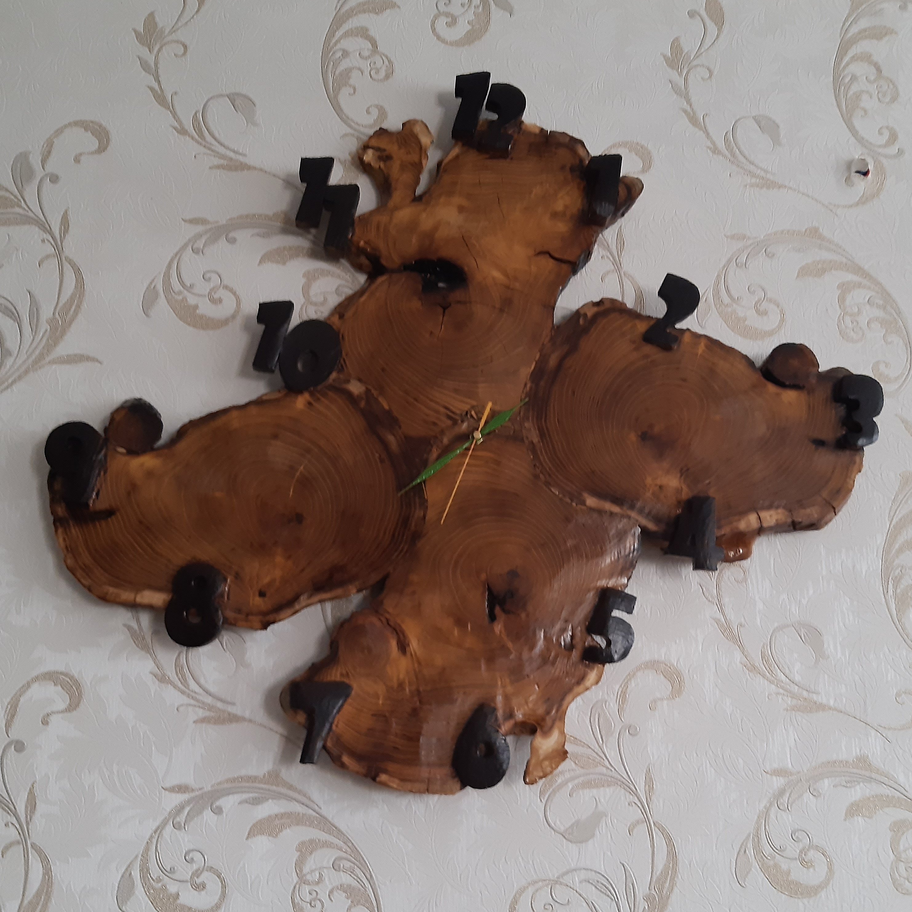 جنس ساعت از چوب مرغوب .عددهای ساعت هم چوبی ودست ساز هستند
