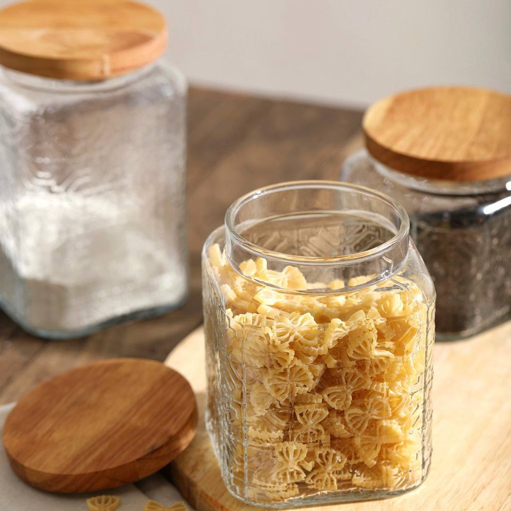 ست بانکه های 3 عددی در 3سایز مختلف جنس بدنه شیشه مشجر جنس درب چوبی به همراه واشر سیلیکونی برای جلوگیری از نفوذ هوا به داخل بانکه ها مناسب برای نگهداری چای، شکر و قند و...