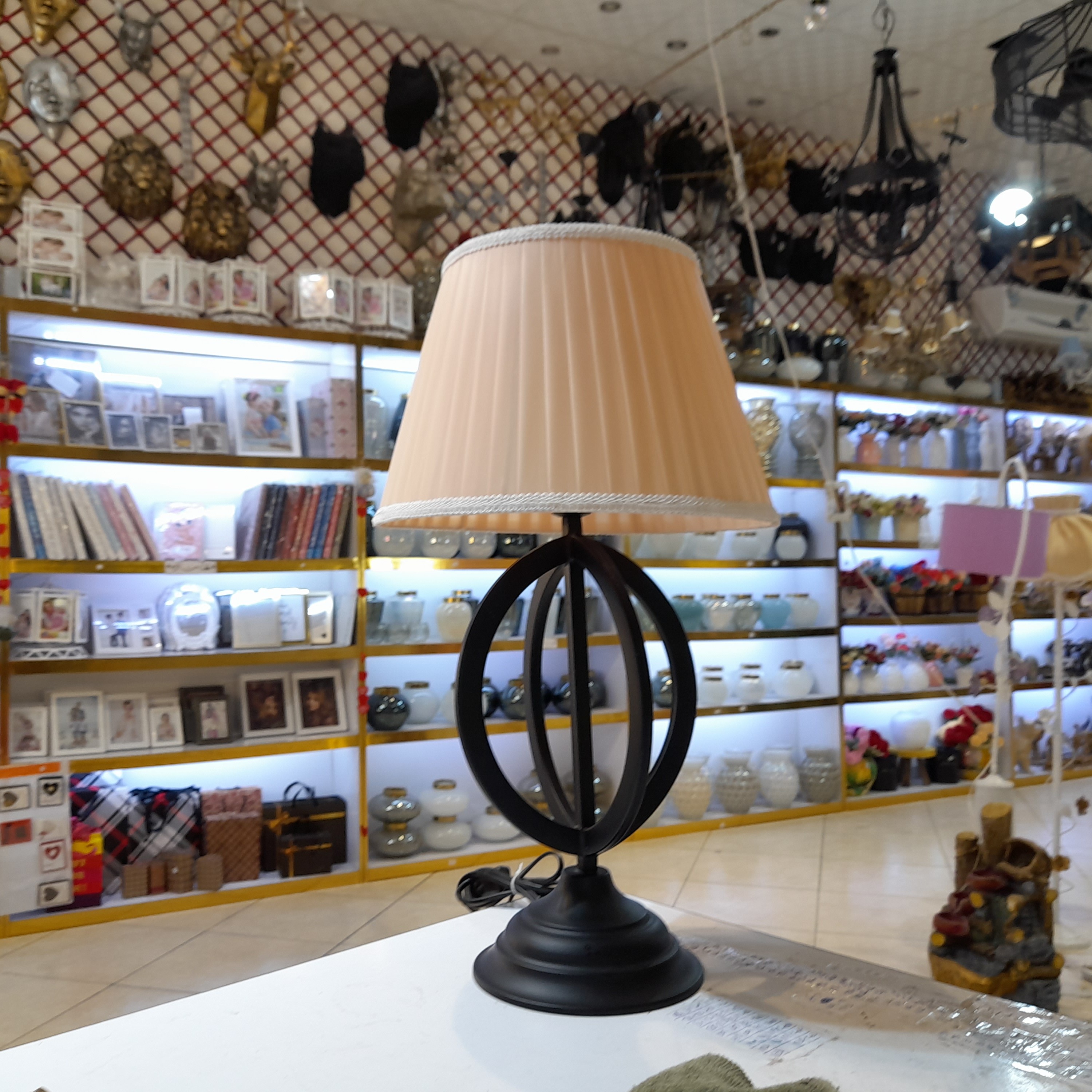 آباژور رو میزی طرح لادن پایه فلزی با رنگ کوره مشکی کیفیت عالی کار محکم و با دوام کلاهک هم پارچه ای هست