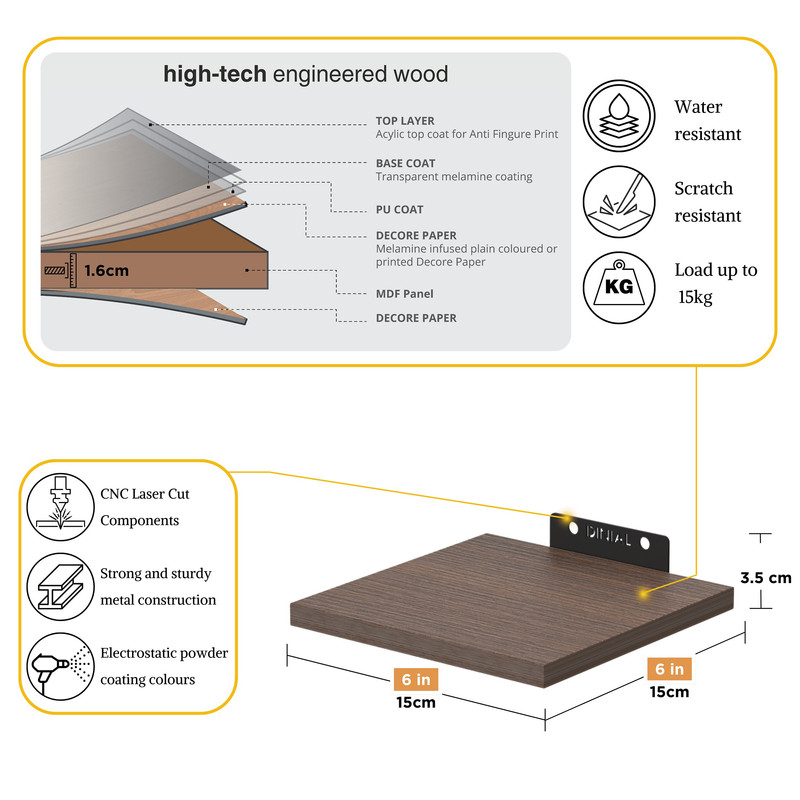 شلف هرمی DN1515 ترکیبی از طراحی مدرن و کیفیت بالاست که میتواند بهسادگی جلوهای خاص و منحصربهفرد به دیوارهای خانه یا محل کار شما ببخشد. بدنهی شلف از چوب MDF با مغز و روکش خارجی مقاوم ساخته شده که ظاهری یکدست و شیک دارد و بهخوبی با انواع سبکهای دکوراسیون هماهنگ میشود. پایهی فلزی با طراحی هرمی و رنگ کورهای، علاوه بر استحکام بالا، دوام طولانیمدت و زیبایی ظاهری را تضمین میکند. ابعاد جمعوجور ۱۵×۱۵ سانتیمتری این شلف، آن را به انتخابی ایدهآل برای قرار دادن گلدانهای کوچک، شمع، مجسمه یا وسایل دکوری دیگر تبدیل کرده است. این محصول همراه با اقلام مورد نیاز برای نصب و دفترچه راهنمای نصب ارائه میشود تا تجربهای راحت و بدون دردسر برای شما فراهم کند. اگر به دنبال راهی ساده، اما تاثیرگذار برای زیباتر کردن فضای زندگی خود هستید، این شلف میتواند انتخابی هوشمندانه و جذاب برای شما باشد.