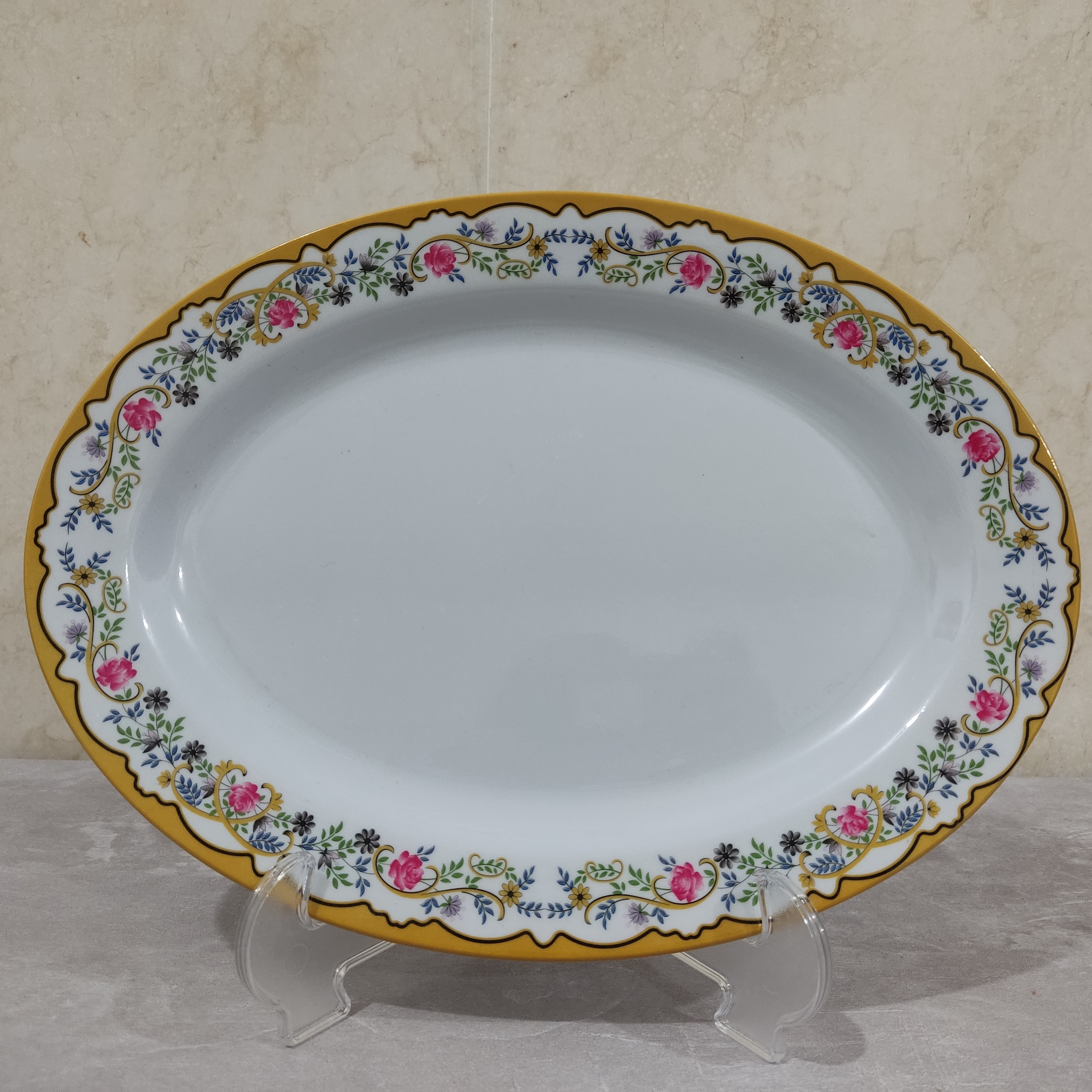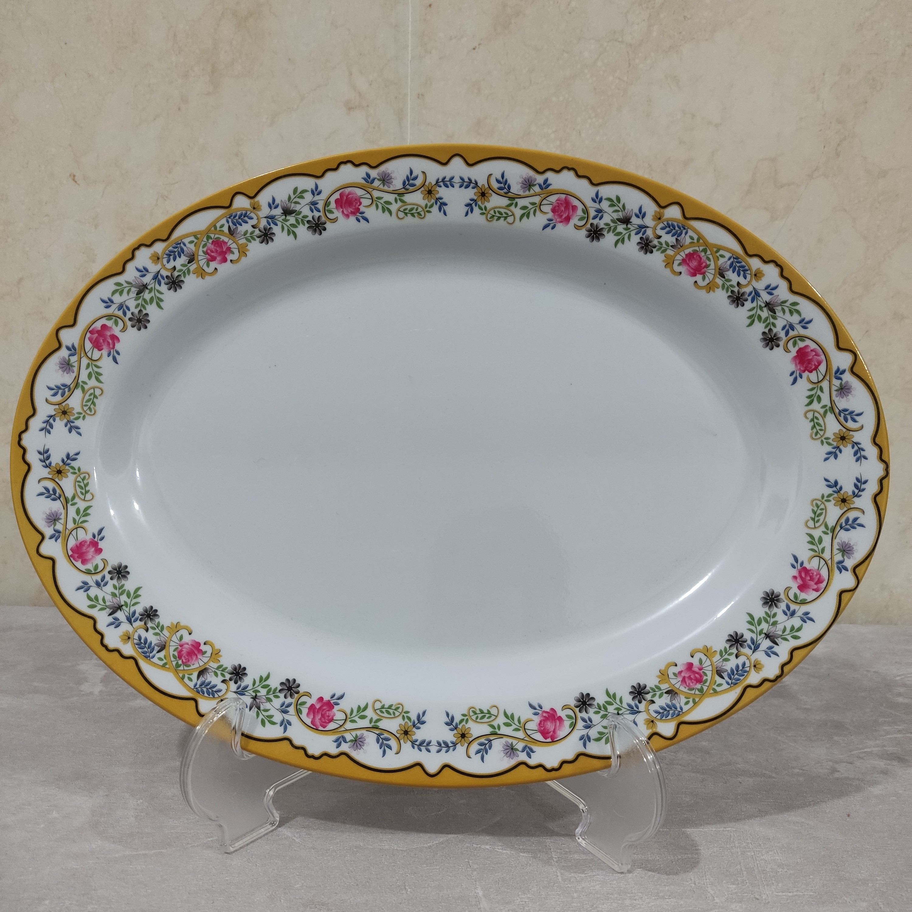 دیس برنج سایز بزرگ ملامین طرح گل طلایی وزرد مارک یزد ملامین بسته ۱ عددی دیس کباب وبرنج سایز بزرگ سایز ۳۷ در ۲۷.۵سانت دارای استاندارد وضخیم و مواد درجه یک تولید کارخانه یزد