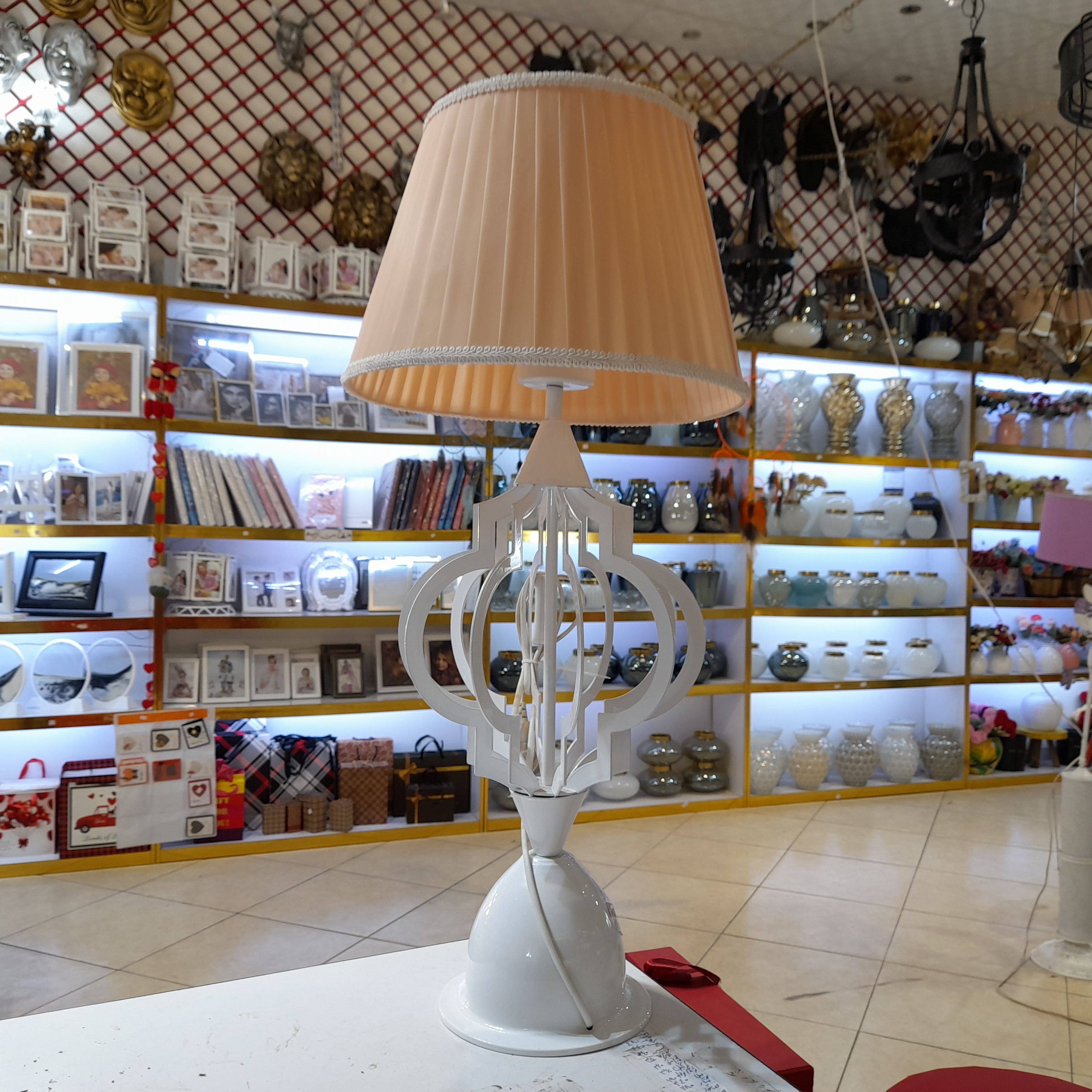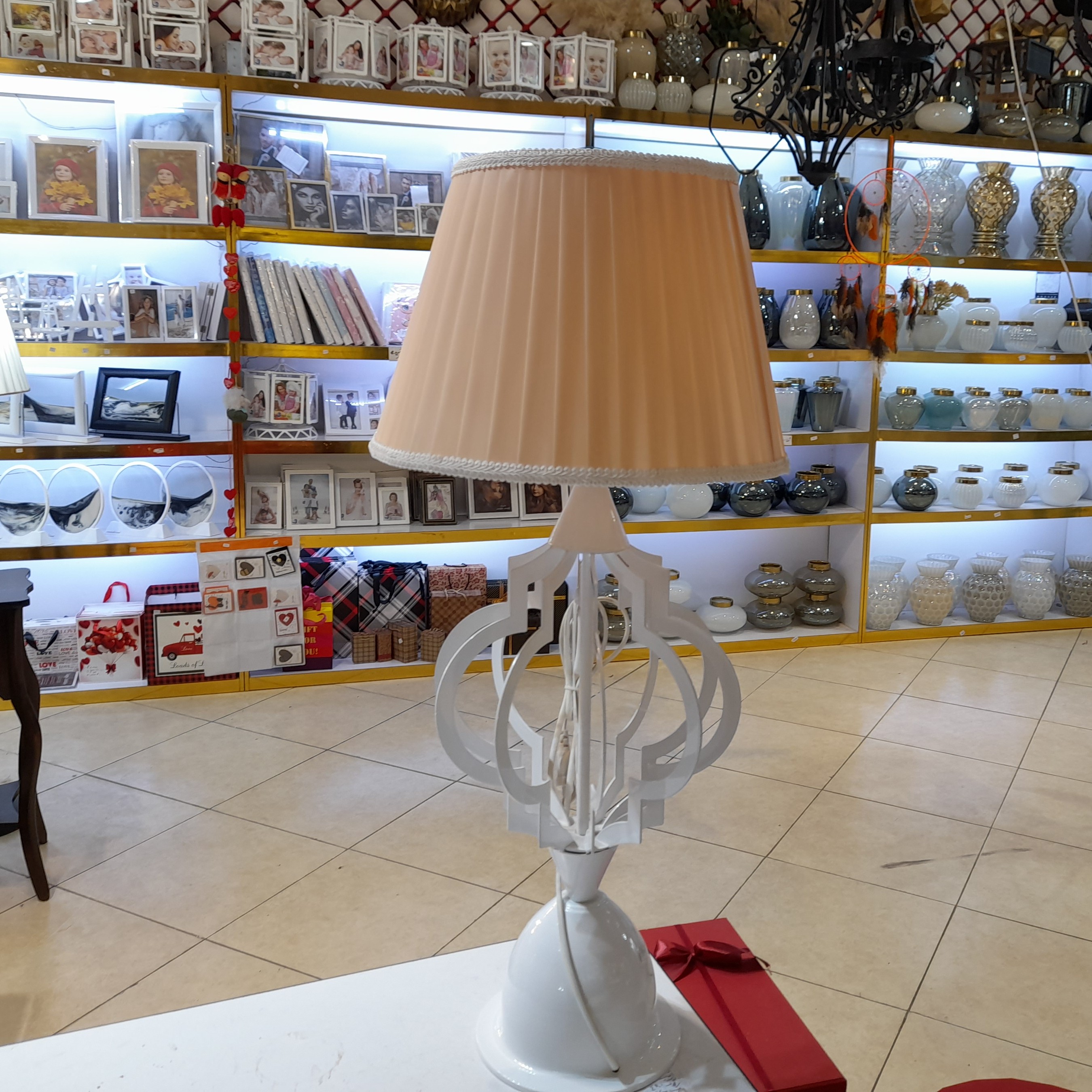 آباژور طرح شمشیری با پایه فلزی و کلاهک پارچه ای کار محکم و با دوام طراحی جذاب سایز نسبتا بزرگ با سرپیچ بزرگ