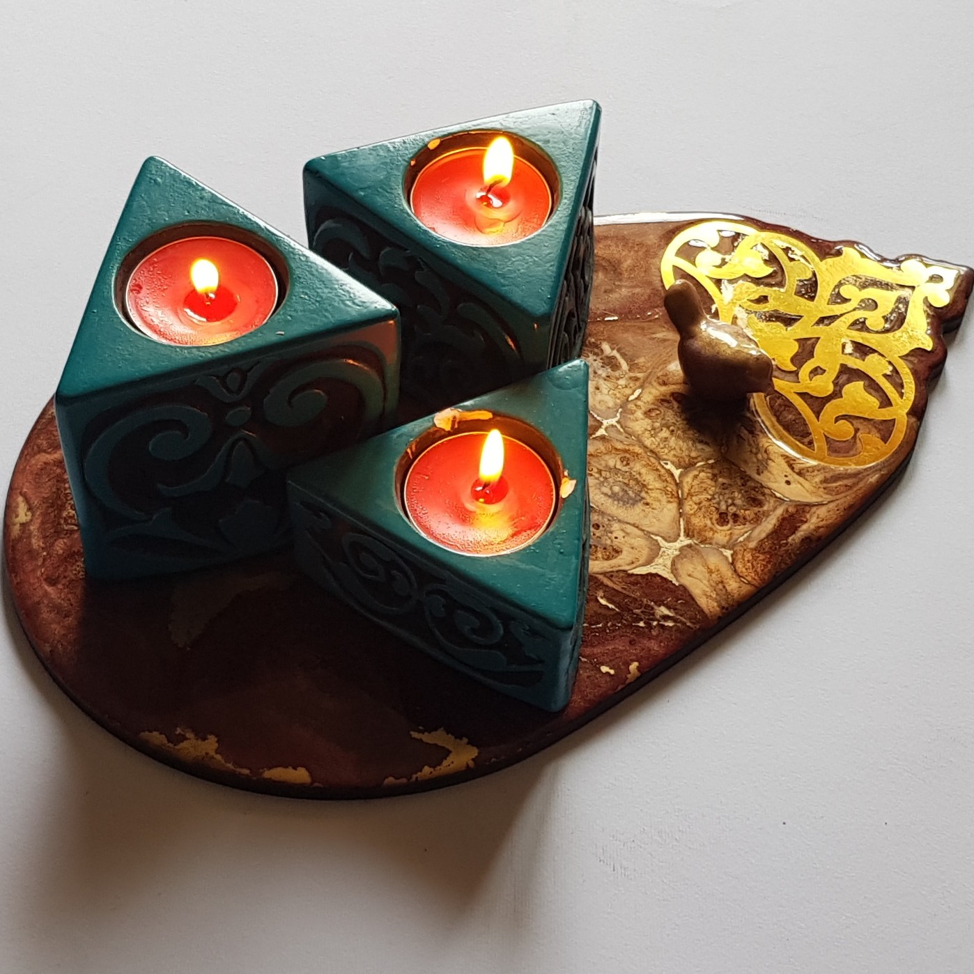 استند زیبا چوب و رزین طرح اشک یک کار تک برای پذیرایی دوستانه و یا یک استند برای شمع و لوازم آرایش و..