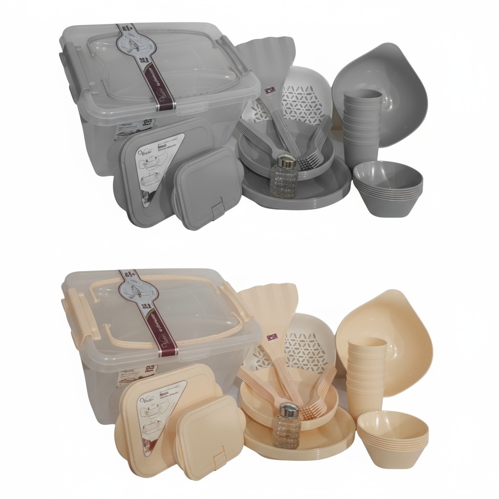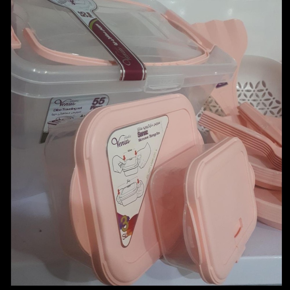 سرویس باکیف مسافرتی دیبا کیفیت فوقالعاده علارغم قیمت مناسب قیمتش مناسبه چون هنوز اسم در نکرده لطفا همه عکس هارو ببینید تا بهتر شاهد زیبایی کار باشید سرویس مسافرتی دیبا شامل: سرویس مایکروویو ساناز سوپاپدار در ۲سایز کاسه بزرگ صافی بزرگ بشقاب بزرگ بشقاب کوچک قاشق چنگال کارد لیوان پیاله نمکدان و بادبزن در رنگ های صورتی، توسی، کرمی و کالباسی