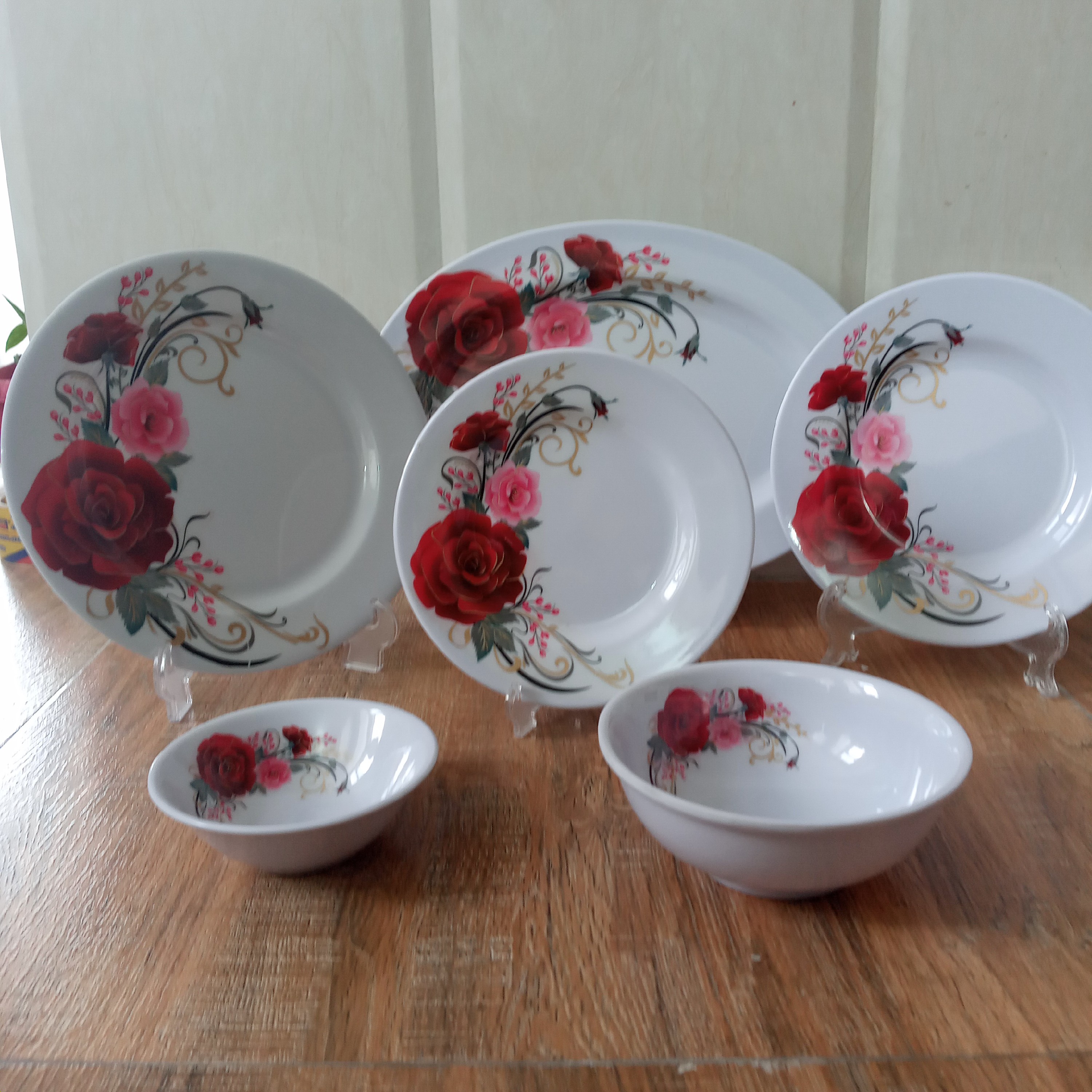 سرویس ملامین 31 پارچه مارک سپید یزد دارای استاندارد مارک اصلی تولید یزد و مواد درجه یک طرح گل سرخ مبلمونسرا مدل 287920