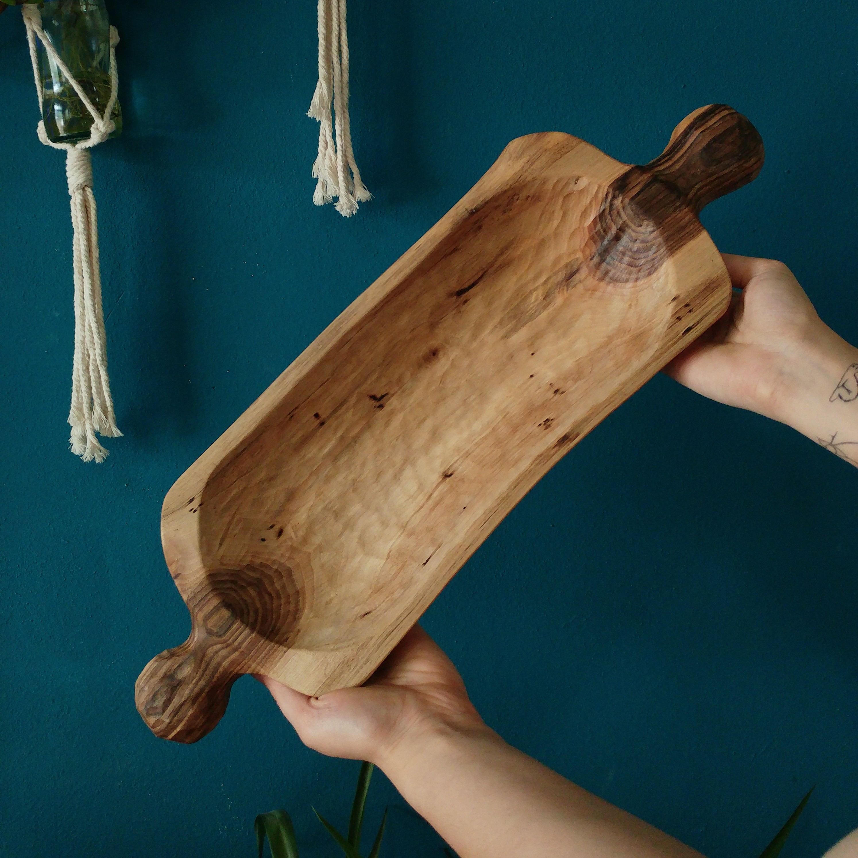 ساخته شده از چوب گردو دارای پوشش محافظ و آبگریز مغار خورده و دستساز دارای دو دسته عمیق ظروف چوبی حتما با ابر نرم و آب ولرم شسته شود و از شوینده های قوی نباید استفاده کرد