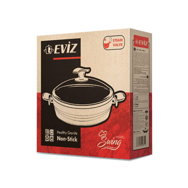 قابلمه های اویز با بهره گیری از فناوری های بروز و پیشرفته از بهترین اجناس موجود بازار می باشد و انتخاب مناسبی برای طبخ غذاهای مختلف بهحساب میآید. دستههایی از جنس باکالیت و درپوشهایی از جنس دارد. نکته مهم که این قابلمه را نسبت به سایر ظروف متمایز میکند عدم وجود زوار استیل یا فلزی در دور درب ظرف می باشد که به جهت حفظ بهداشت و عدم تجمع میکروب در سطح بسیار مهم و حایز اهمیت می باشد. ظروف آشپزی اِویز به روش فورج و از آلیاژ ویژه با بکارگیری تکنولوژی روز دنیا برای اولین بار در ایران تولید میگردند، پوشش نچسب آلمانی به کار رفته در این سرویس ها از بهترین مواد اولیه استفاده شده است. بهداشتی بودن لبه درب تمام شیشه، سوپاپ اطمینان و تعبیه سه برجستگی در لبههای جهت خروج بخار، دارا بودن نشان استاندارد Bio آلمان به عنوان تضمین حفاظت از محیطزیست، استحکام و سختی بسیار بالای محصول و عدم شکنندگی از سایر ویژگی های این محصول می باشد. همانطور که در بالا اشاره شد جنس دسته و همچنین قپه درپوش باکالیت بوده که از مقاومت بالایی دربرابر حرارت برخوردارند. کفهی بیرونی ظروف هم ضدخش طراحی شده است و در صورت استفاده روی انواع اجاقگاز، آسیبی متوجه آنها نخواهد بود. برای طول عمر بالای ظروف بهتر است از ماشین ظرفشویی به هیچ عنوان استفاده نکنید و فقط با یک تکه اسفنج نرم و مایع شویندهی ملایم آن را بشویید.