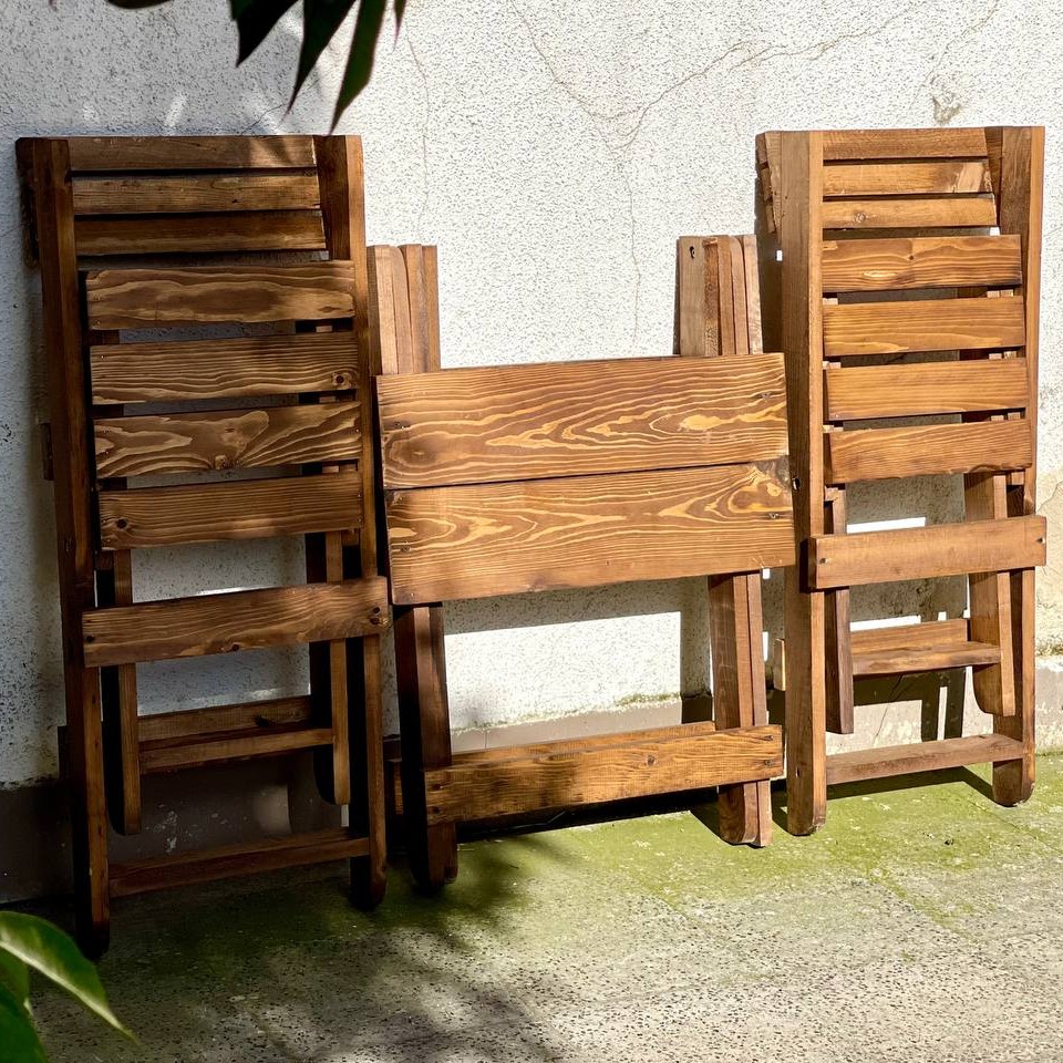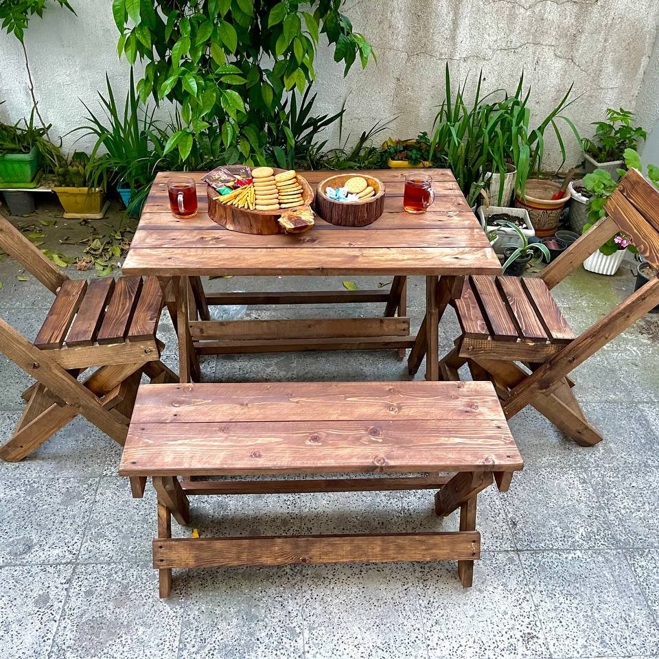 چوب نراد روسی تاشو و کمجا با کیفیت عالی شامل میز و صندلی و نیمکت می باشد
