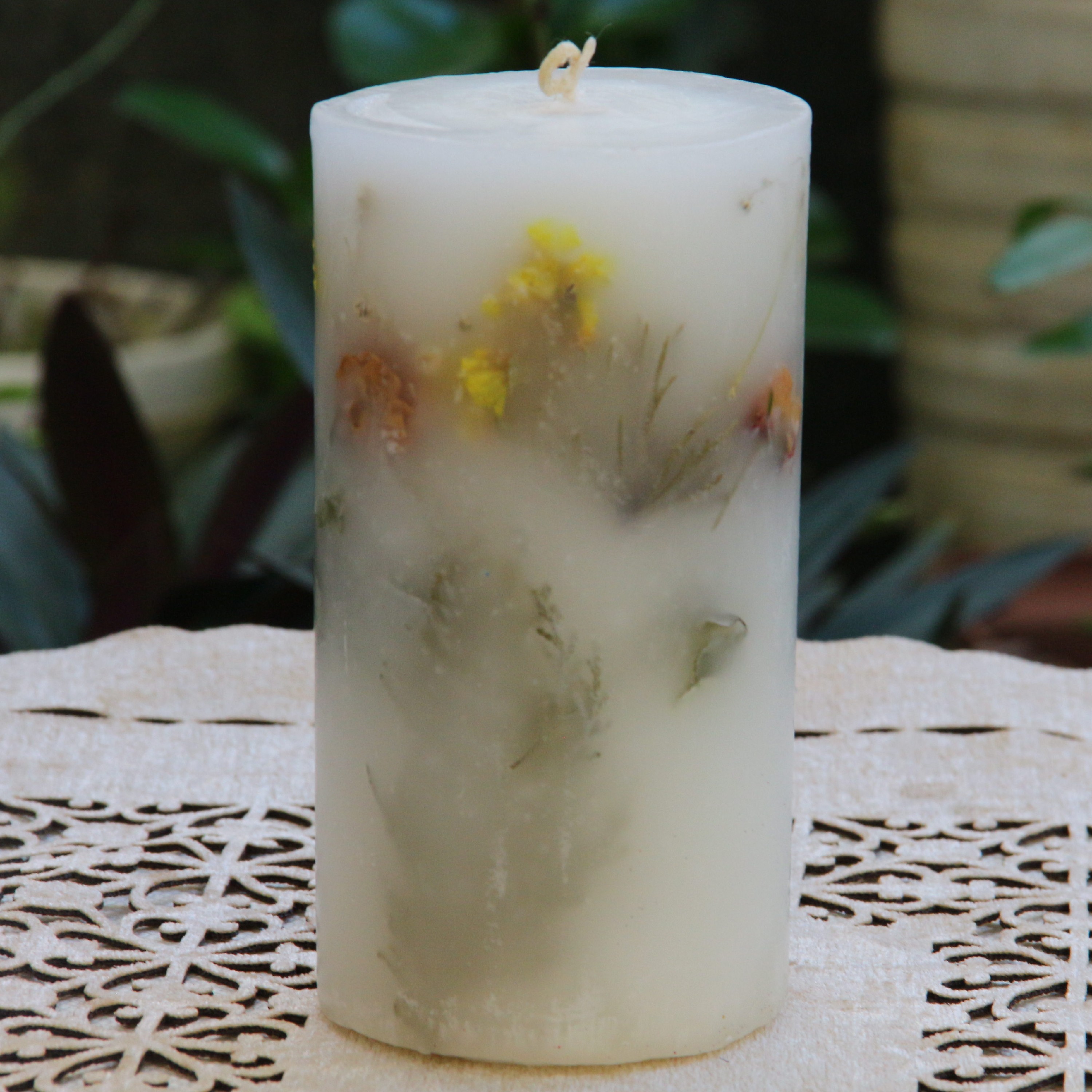 شمع استوانه ای گل خشک سفید رنگ مبلمونسرا مدل 284967