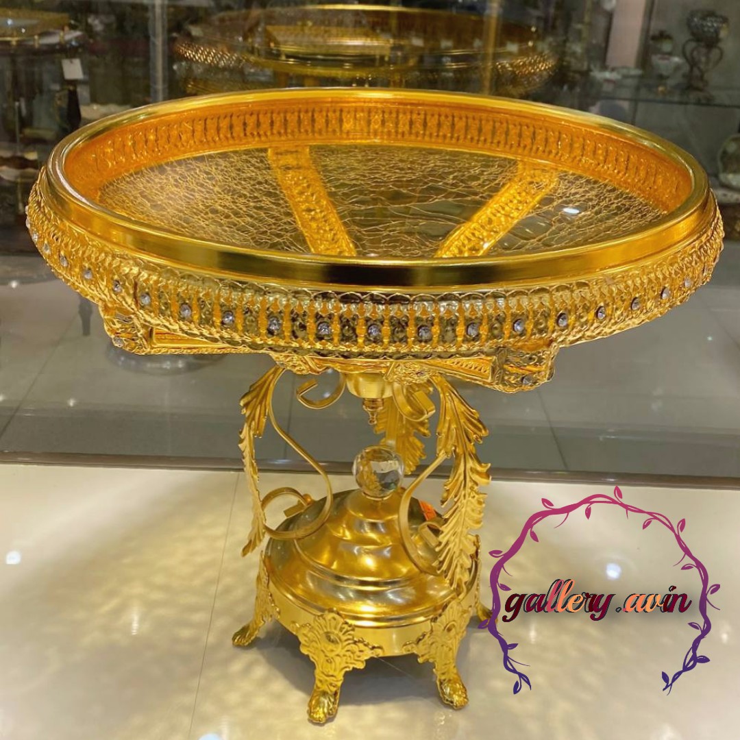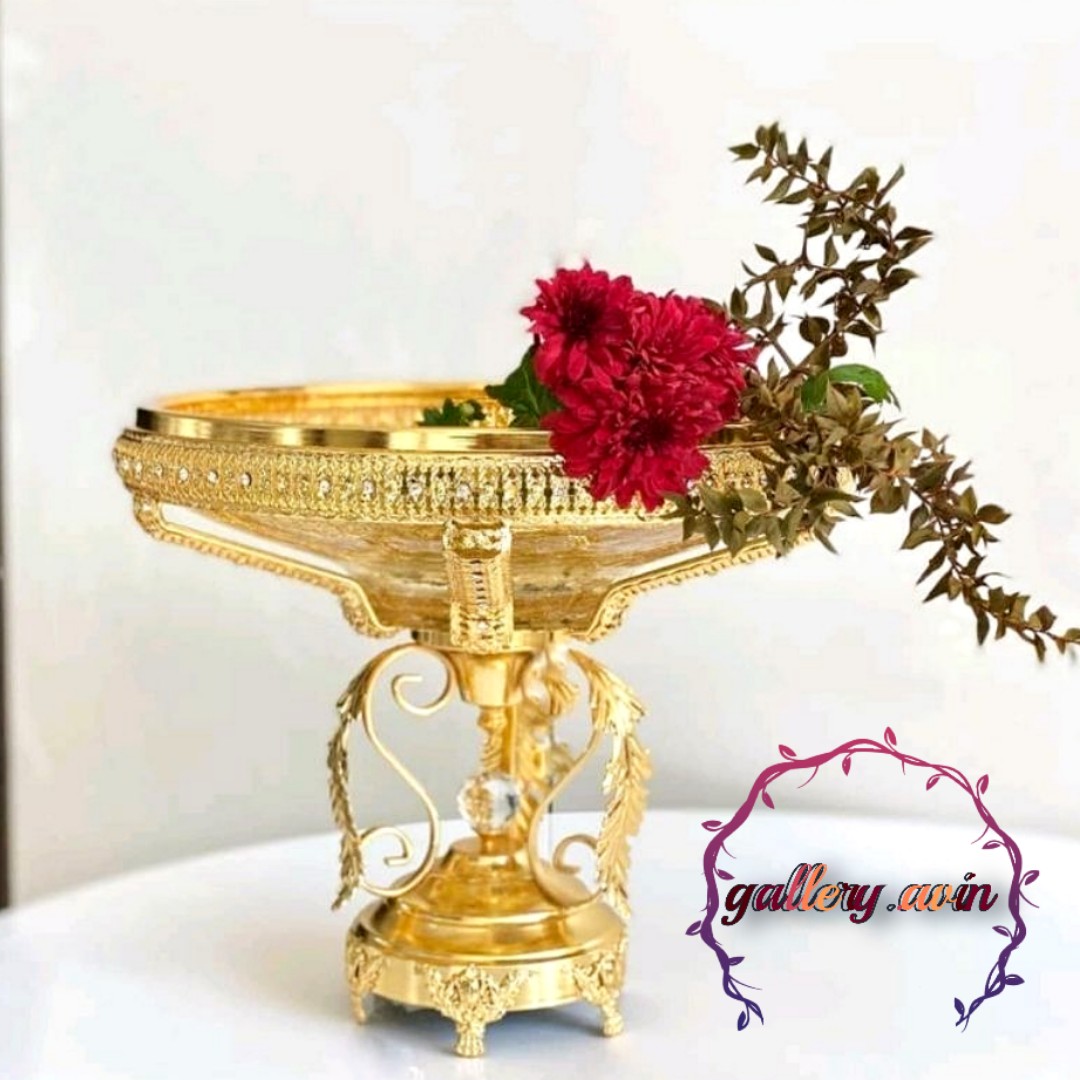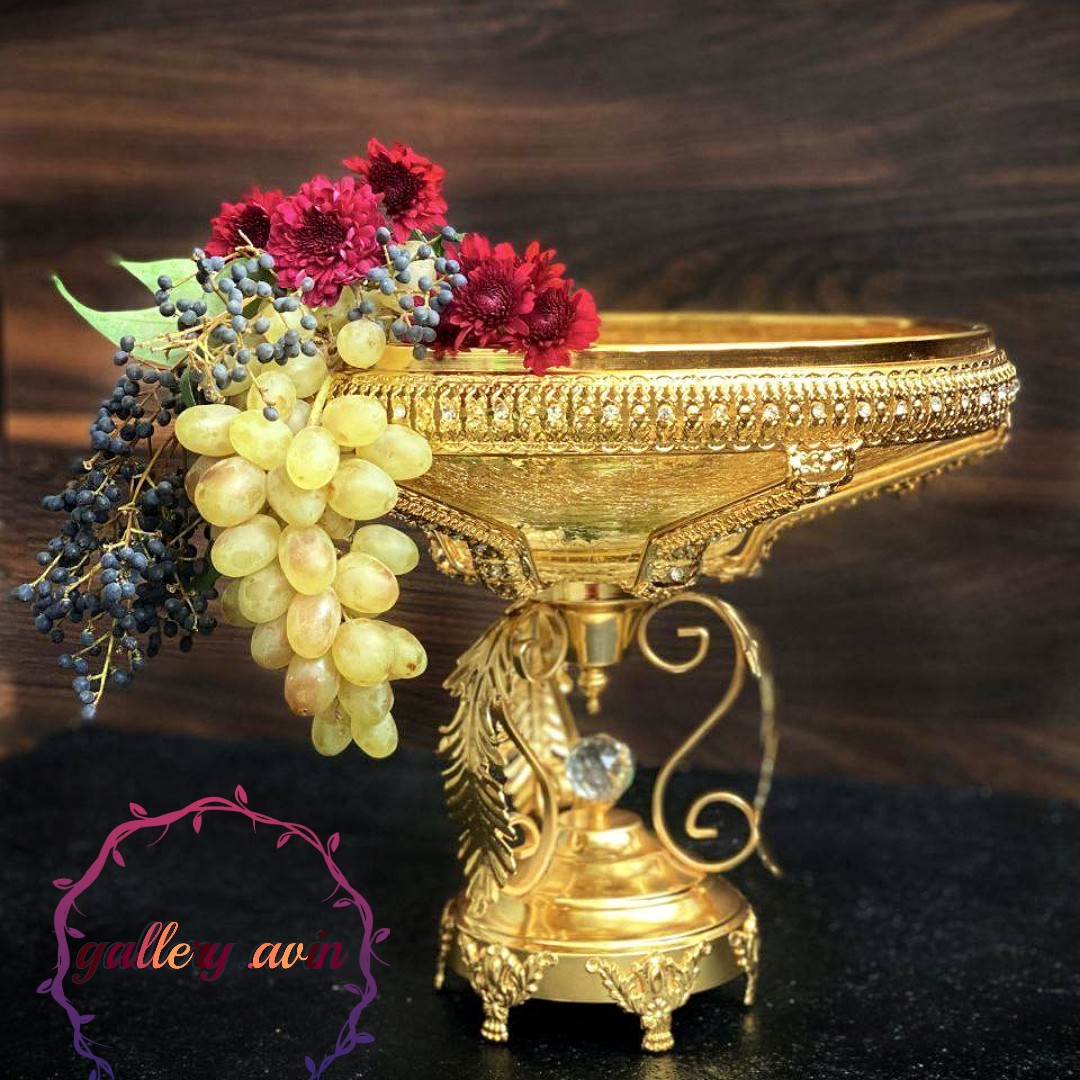میوه خوری پایه دار طلایی نگین دار شیشه تَرَک