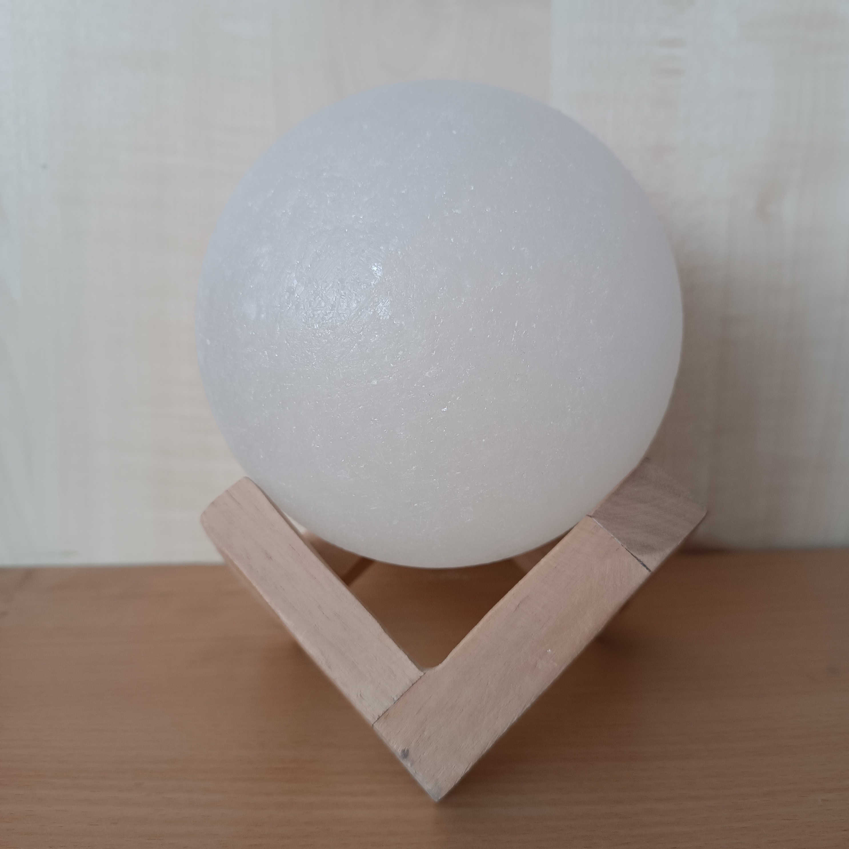 آباژور سنگ نمک طرح گوی با لامپ زرد و پایه چوبی برای سنگ نمک که با کابل USB روشن می شود . هیچ خطر برق گرفتگی ندارد و برای اتاق خواب کودکان بسیار مناسب است و همچنین به خواب راحت تره کودکان کمک می کند . مصرف برق کمی نسبت به آباژور های مصنوعی دارد .