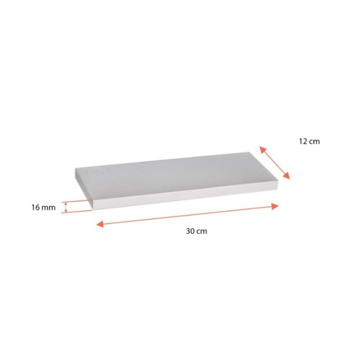 این شلف دیواری از جنس ملامینه با ضخامت 16 میلیمتر ساخته شده است. این محصول داری طیف وسیعی از کاربرد است. در آشپزخانه برای قرار دادن شیشه و بطری ها، در اتاق برای نگهداری گلدان و لوازم دکوری ،در دستشویی و حمام، زیر آینه یا بصورت مجزا برای قرار دادن لوازم شوینده و آرایشی بکار میرود. نصب این محصول با 2 پایه فلزی که به همراه شلف است به سادگی انجام میپذیرد و در پوشی روی پایه قرار میگیرد که روی پیچ را بپوشاند