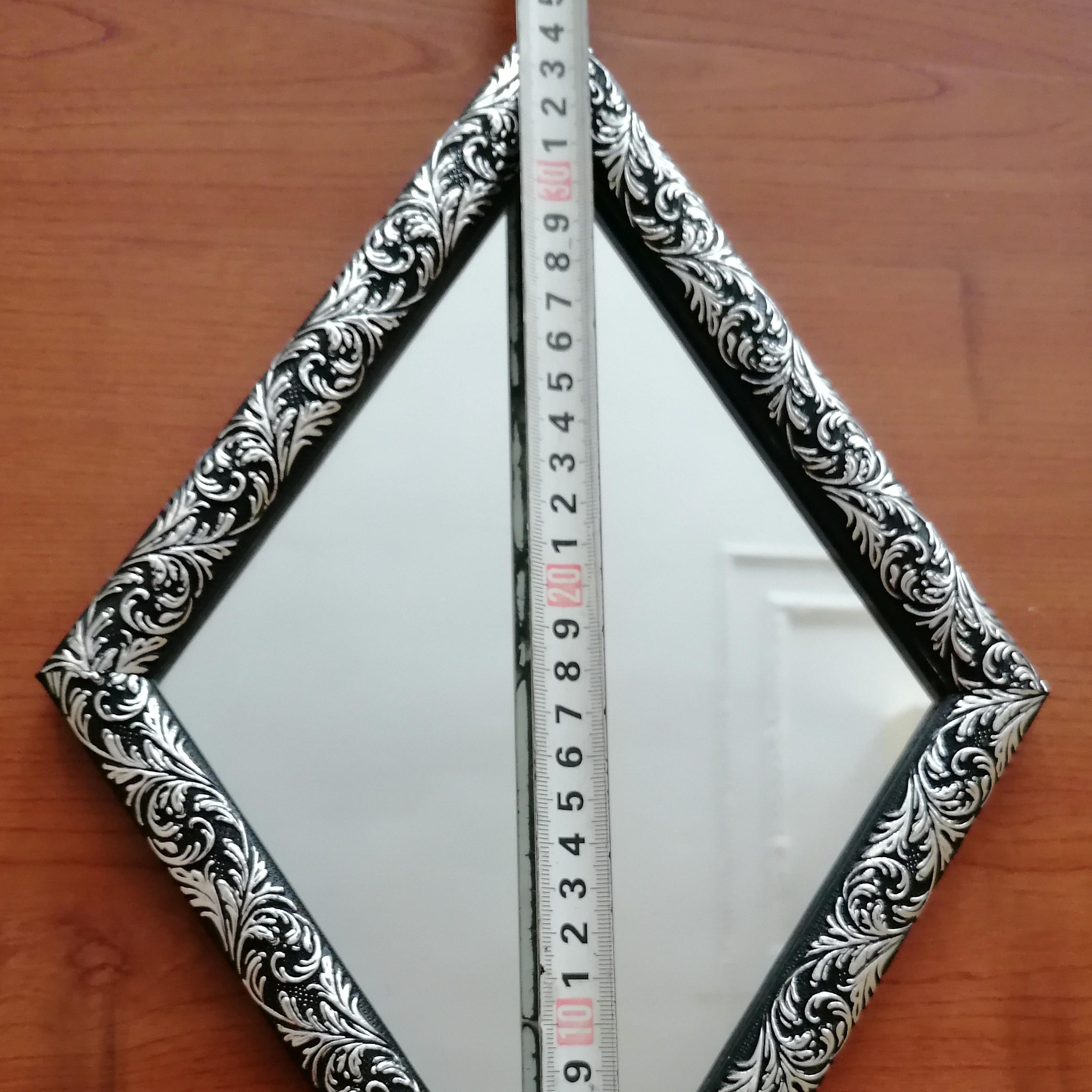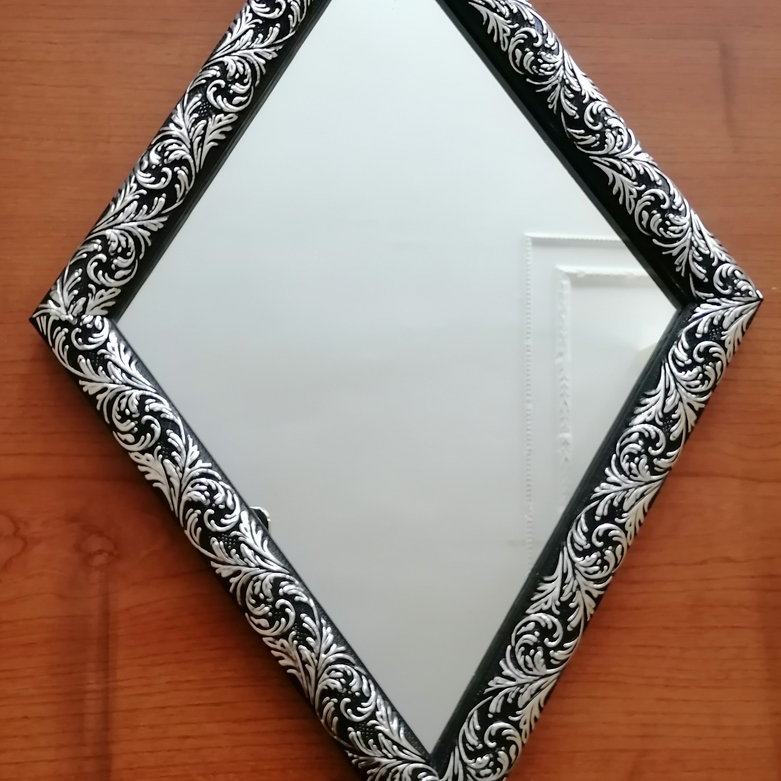 آینه دکوراتیو ساده لوزی 5 تکه ✨ آینه ساده 4میل به همراه قاب pvc مشکی نقره ای می باشد. 📐 ابعاد آینه با قاب:24×40 سانتی متر ✨توجه: تعداد، اندازه و رنگ آینه ها به دلخواه شما قابل تغییر می باشد 😍 💥 مزایای این محصول نسبت به محصولات مشابه : 🔸نصب آسان 🔸تنوع در طرح و رنگ و اندازه 🔸طراحی دلخواه متناسب با فضای خانه شما 🔸 تغییر آسان دکوراسیون با تغییر در نحوه چیدمان آینه ها