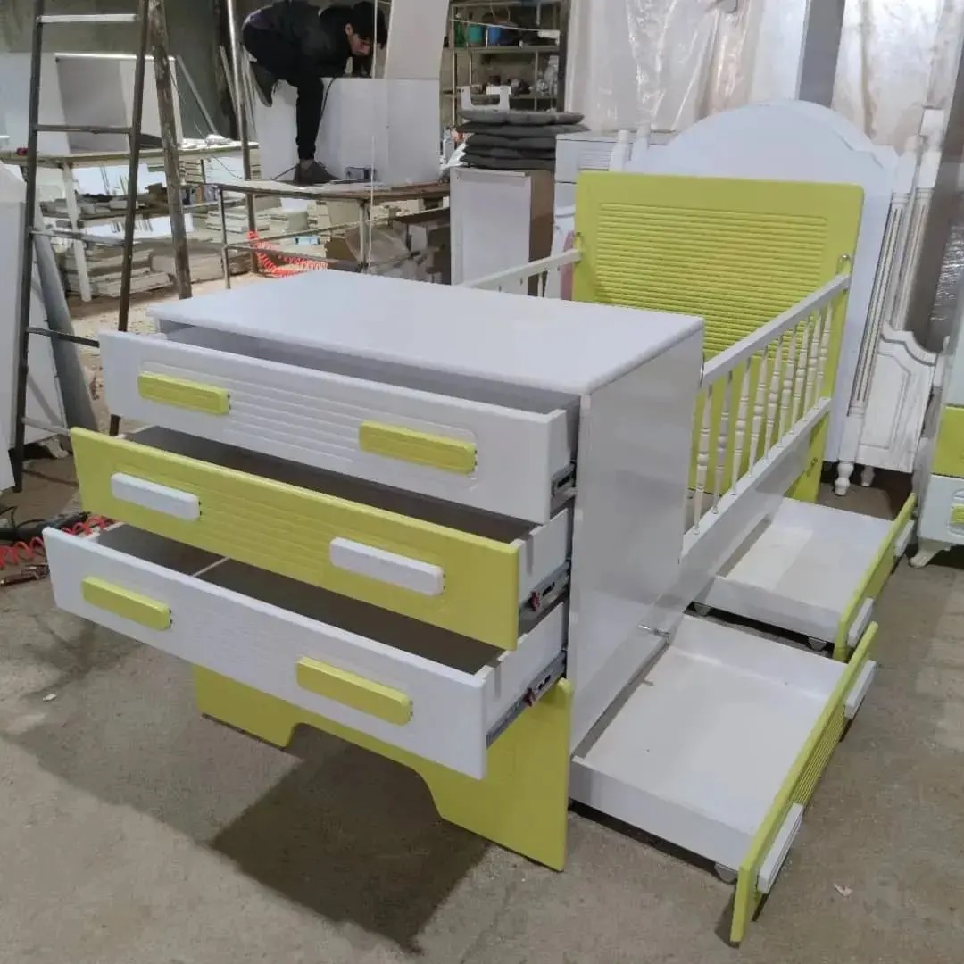 سیسمونی تخت و کمد نوزاد نوجوان کودک بچه سرویس خواب نوجوان مدل لاکچری رنگ زرد سفید مبلمونسرا مدل 227308