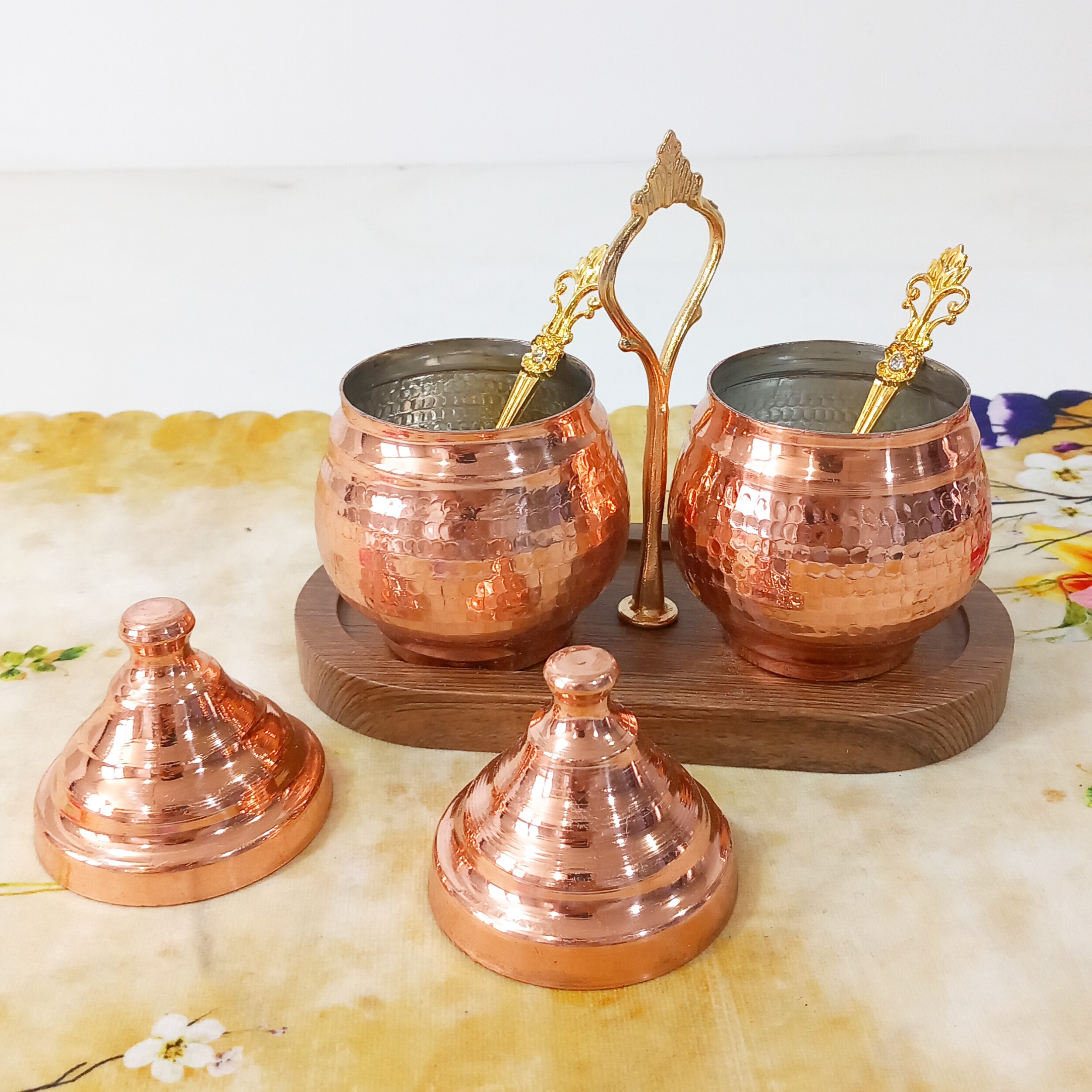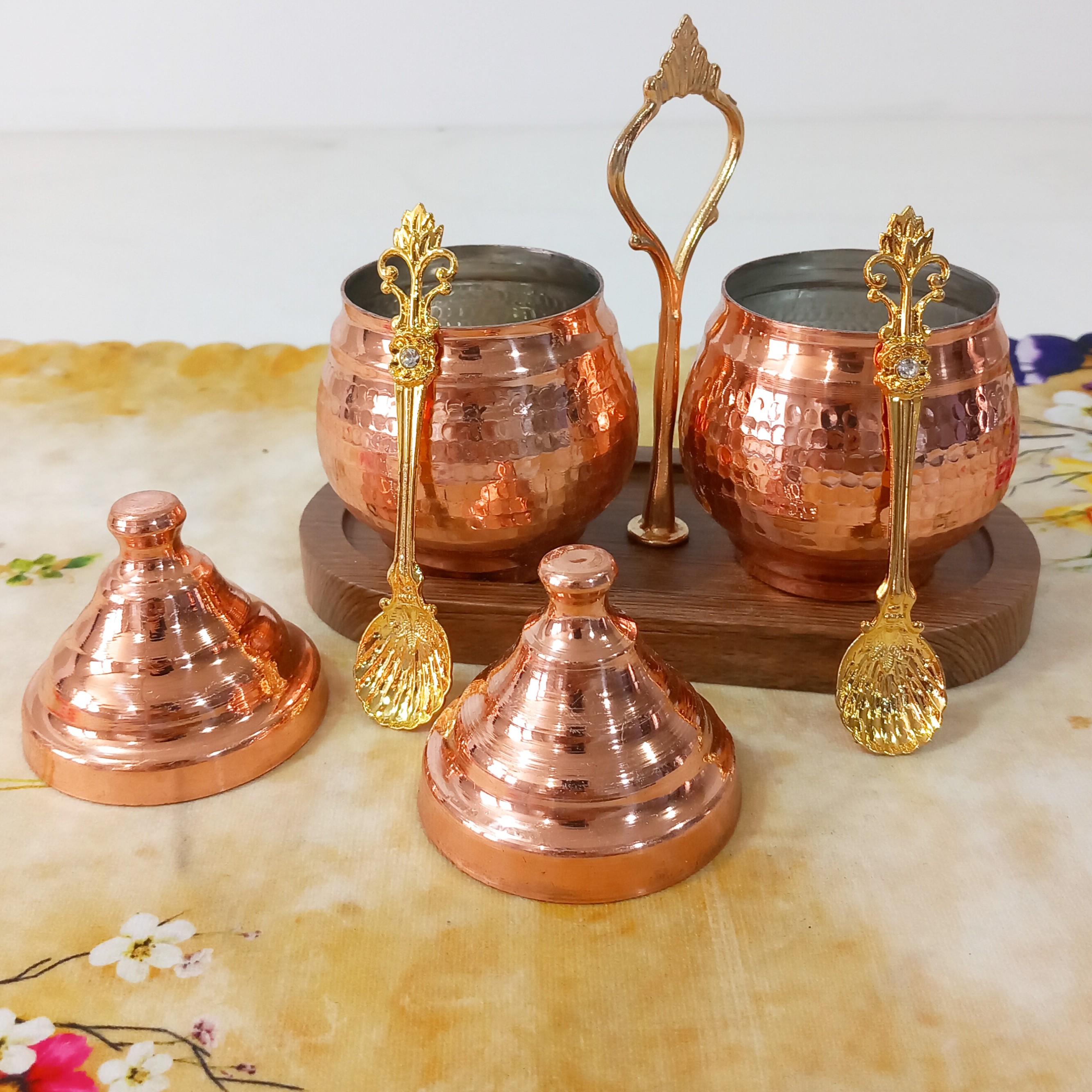 جا ادویه مسی دوتایی قاشق دار با استند چوبی ارسال رایگان مبلمونسرا مدل 288586