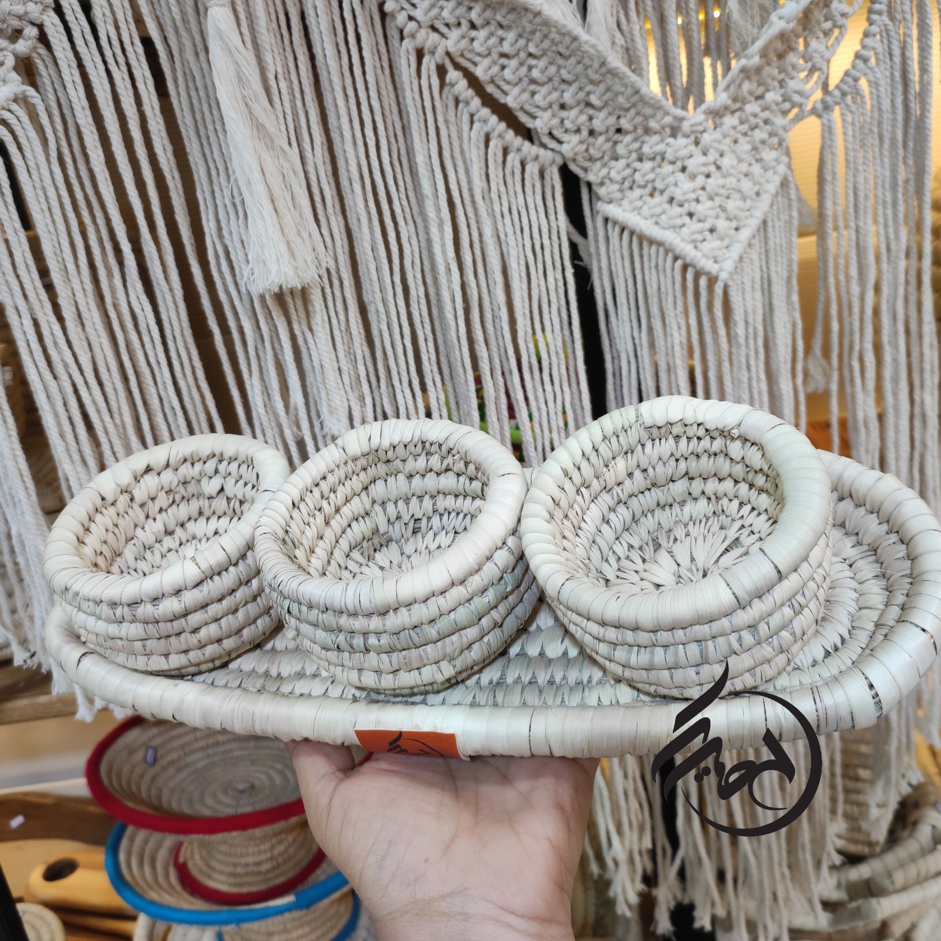 ست اردور خوری حصیری آجیل خوری کپوبافی شامل سه کاسه کوچک و یک سینی بیضی مبلمونسرا مدل 264846