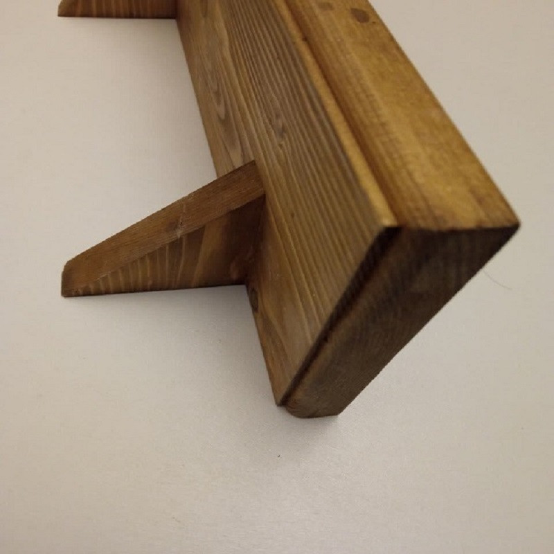 ساخته شده از چوب مرغوب و خشک روسی . پرداخت شده . اندازه این شلف ( عرض 11 سانتیمتر , طول 48 سانت ) برای قرار دادن این شلف روی دیوار دو عدد قلاب آویز در پشت شلف نصب شده است. با توجه به طبیعی بودن چوب ممکن است در هر سری تولید طرح و نقش چوب متفاوت باشد.