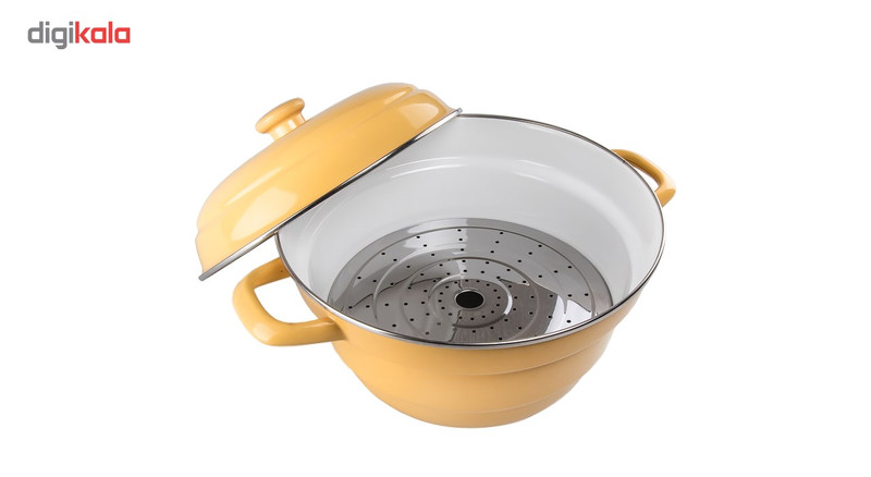 "قابلمه بخار پز رومنس مدل KF27" یک قابلمه با کاربری ویژه و ظاهری بسیار زیبا و جذاب! این قابلمه به شما این امکان را می دهد تا با خیالی آسوده غذاهای سالم طبخ کنید و به بدن خود احترام بگذارید. این ظرف دوستداشتنی از ورق فلز مرغوب با رش لعاب ساخته شده است تا مقاومت لازم در برابر حرارت و گرما را داشته باشد و با گذشت زمان دچار آسیبدیدگی نشود؛ بهاینترتیب با خیالی آسوده میتوانید این قابلمه را روی شعلهی مستقیم اجاقگاز قرار دهید. قابلمه بخارپز به صورت مخروطی طراحی شده تا بتواند فضای مناسبی برای تجمع بخار و گرما بوجود بیاید و مواد غذایی خیلی سریع و بسیار سالم بخار پز شوند. در بدنه قابلمه خطوطی مدور وجود دارند که فضای نگهداری برایتوری استیل را دارد تا مواد غذایی ابتدا روی توری و بعد در قابلمه دارای آب جوش قرار بگیرد و عملیات پخت انجام شود.سایر این قابلمه 28 است.درب این قابلمه با حالت منحنی که دارد این امکان را بوجود می آورد تا بخار در بالای قابلمه هم در گردش باشد که این خود یک نکته مثبت طلقی می شود.همچنین این ظرف مناسب برای پخت انواع خورش، مربا،سوپ، آش و... محسوب میشود. درپوش این مدل نیز مانند بدنه از جنس لعابی است و که به پخت سریعتر و بهتر خورش یا سوپ و آش کمک میکند. در دو طرف بدنهی ظرف دستههایی تعبیه شدهاند که حمل و جابهجایی ظرف را برایتان سادهتر خواهند کرد. همچین یک قپه از جنس پلاستیک روی درب ها وجود دارد.ناگفته نماند که بهعلت متصل بودن دسته به بدنهی اصلی ظرف و گرم شدنشان هنگام پخت غذا، برای گرفتن آنها باید از دستگیرههای ضخیم پارچهای یا سیلیکونی استفاده کنید تا دستها دچار سوختگی نشوند. طراحی فانتزی و جذاب این قابلمه در کنار رنگ های شفاف با درخشش، زیبایی و جذابیت آن را دوچندان کردهاند. با طبخ و سرو غذا داخل این ظرف خوشساخت و زیبا، میتوانید سفرهای رنگین و اشتها برانگیز برای خانواده یا مهمانان بچینید.