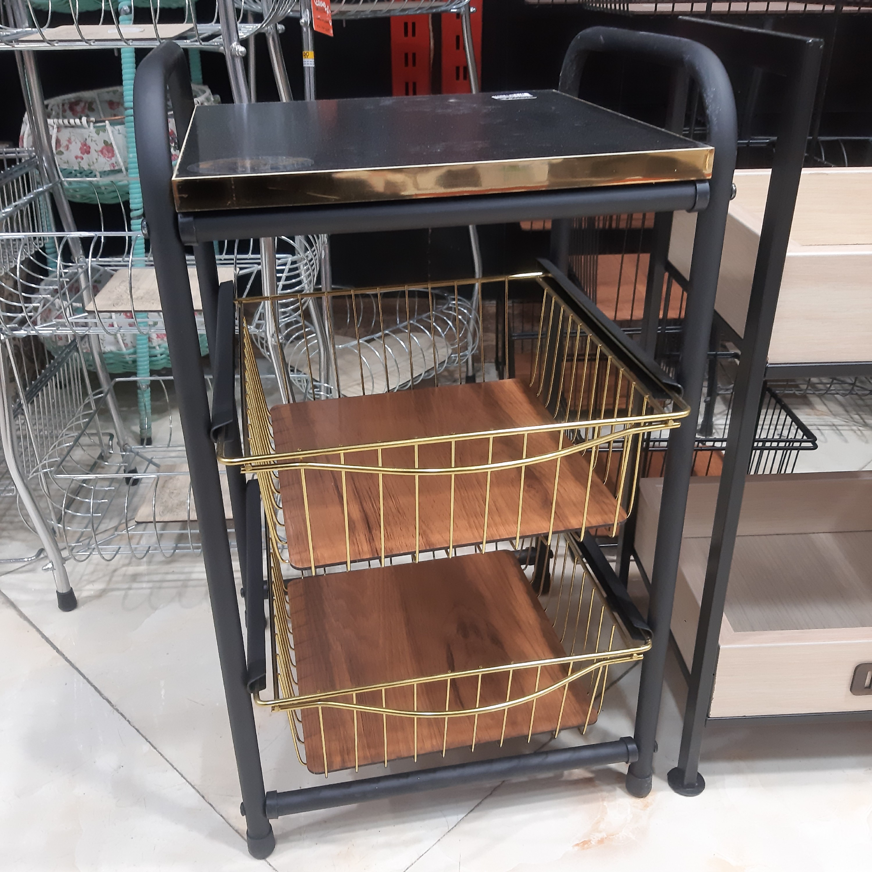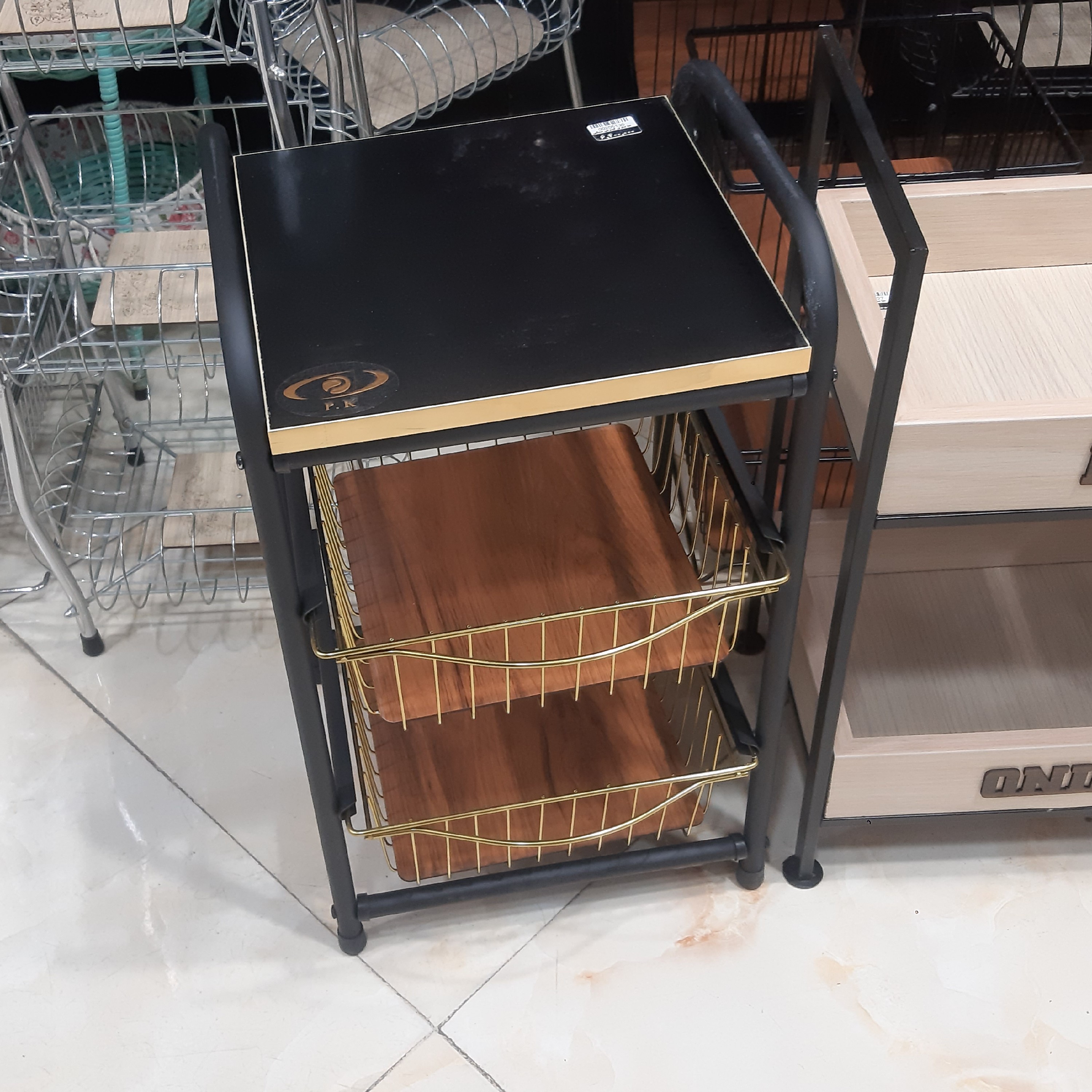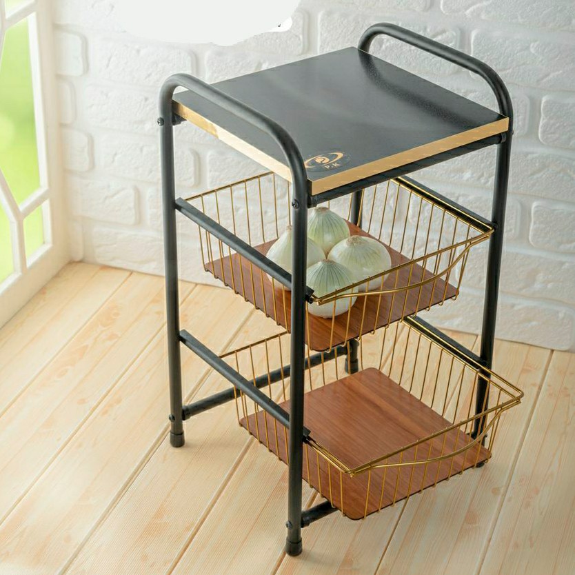 جاپیازی دوطبقه مدل کشویی چوبی رنگ ترکیبی مشکی طلایی جاسیبزمینی پیازی کاوه مبلمونسرا مدل 290628