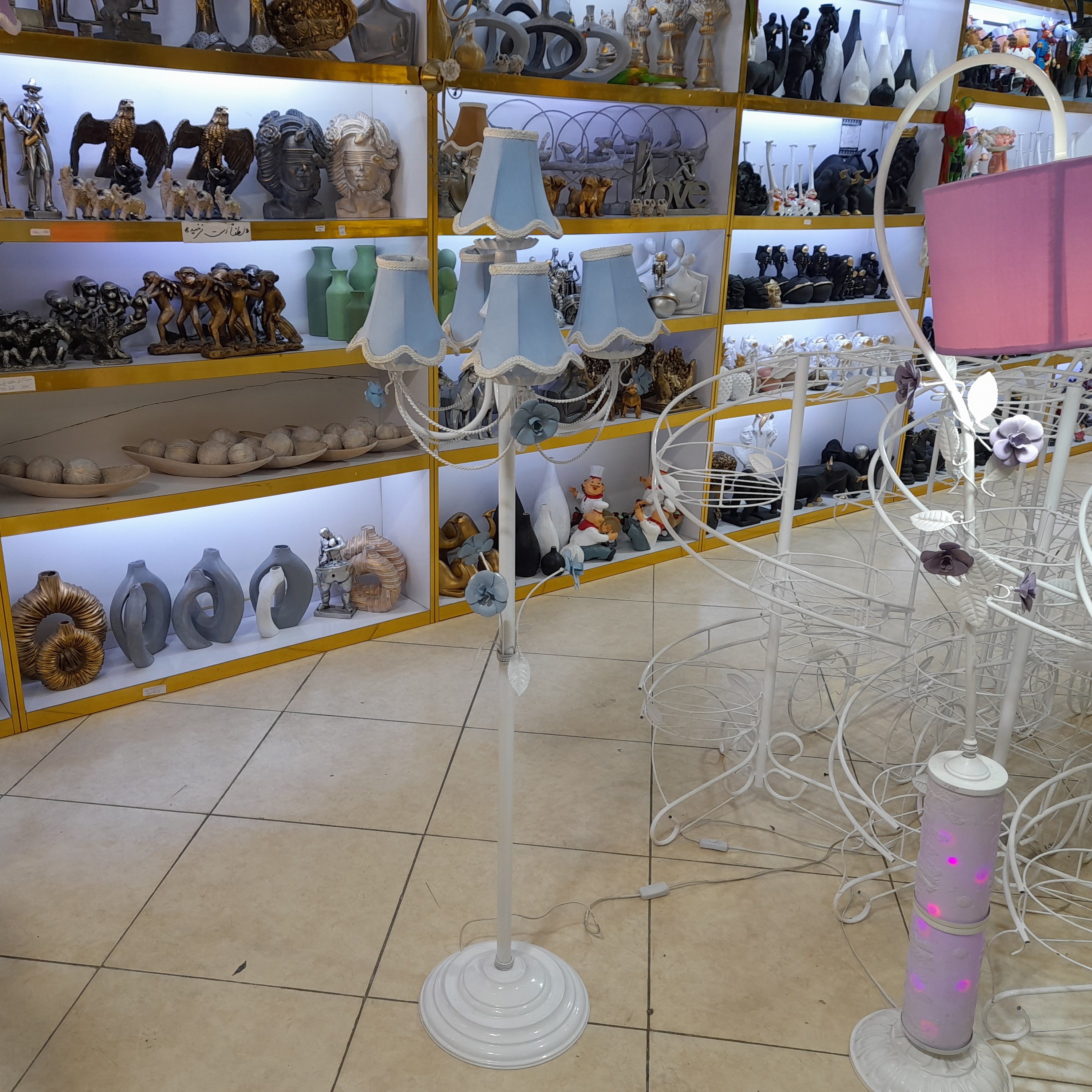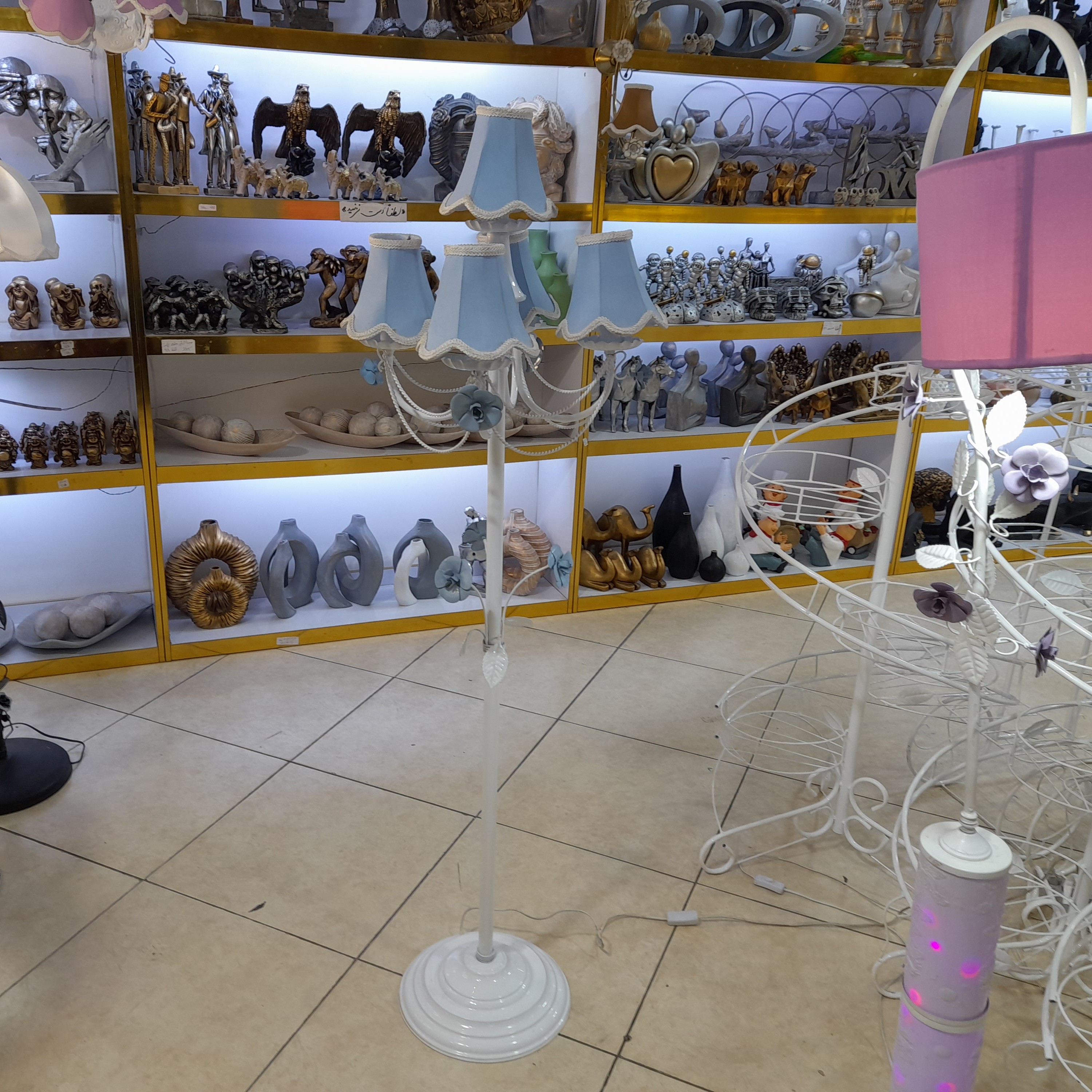 لوستر گلدار ایستاده پنج شعله با بدنه فلزی آباژور ایستاده طرح انگلیش هوم آباژور گلدار فلزی مبلمونسرا مدل 234706