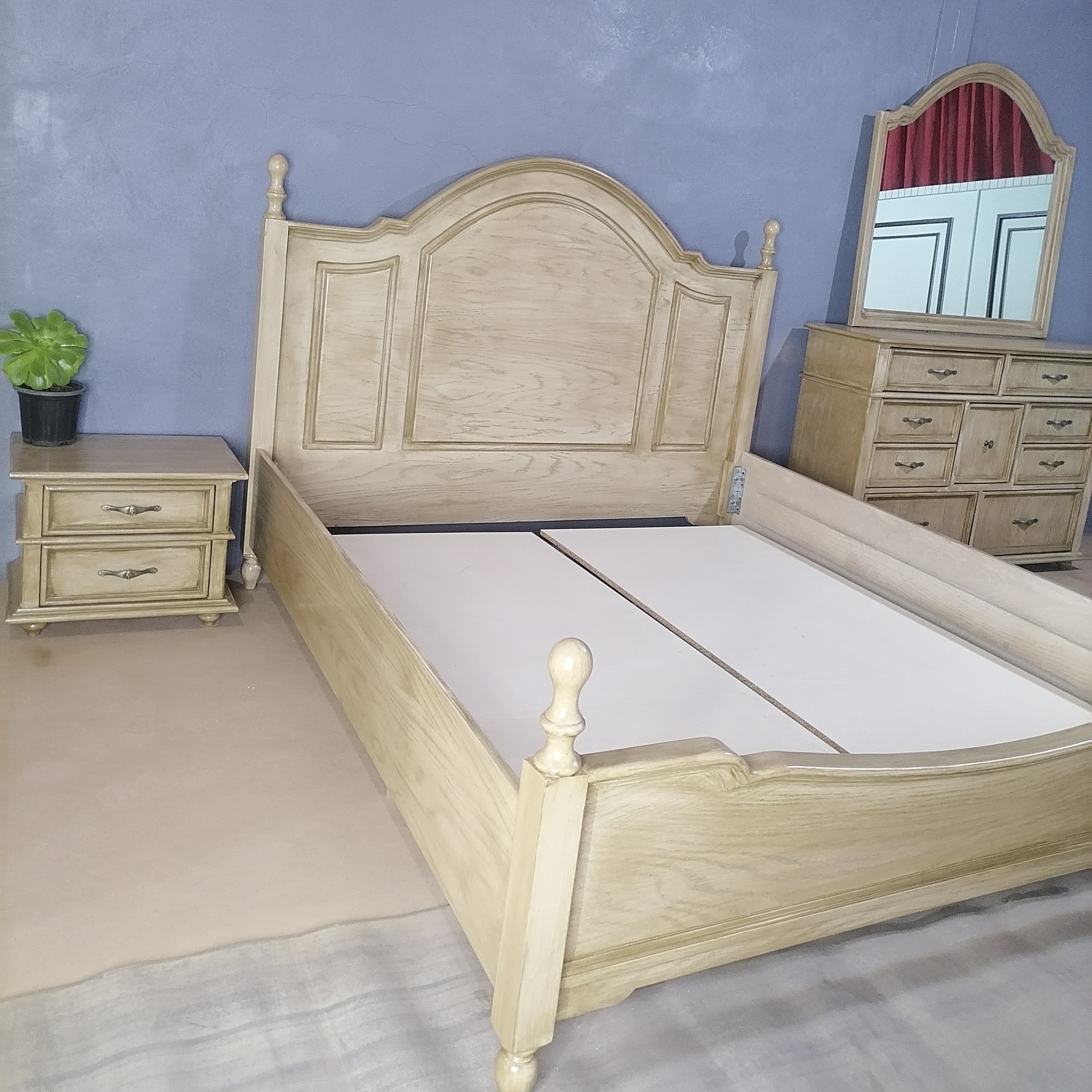 سرویس خواب دونفره جدید چوبی 🛏️ این سرویس خواب دونفره شامل 👇🏻 تخت خواب عرض صدو هشتاد یک عدد پاتختی یک عدد میزآرایش دراوری با آینه دوعدد کفی تخت هست. یکی از جدیدترین سرویس خواب های موجود بازار. متریال 🪵 پایه ستون ها چوب روس ، بدنه ام دی اف خام ،رنگ پوششی و پلی استر رنگبندی کاملا دلخواه شماست 🌈 ارسال به سراسر کشور هم داریم 🚛 هزینه ارسال به عهده مشتری و به صورت میباشد.