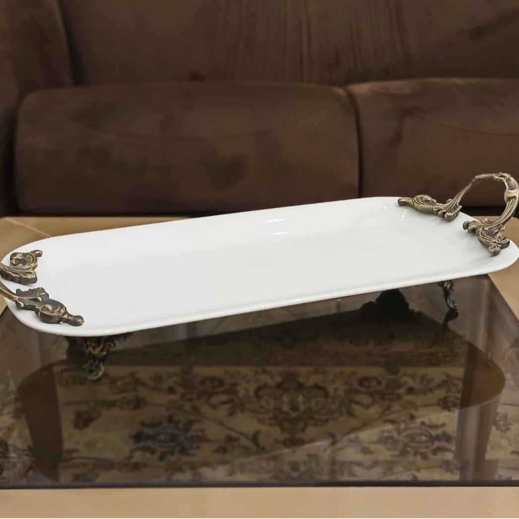 ظرف رولت خوری با دسته و پایه پیوتر جنس بدنه چینی درجه یک برند پردیس در چهار رنگ دسته و پایه، آنتیک، نقره ای، سیاه قلم و طلایی