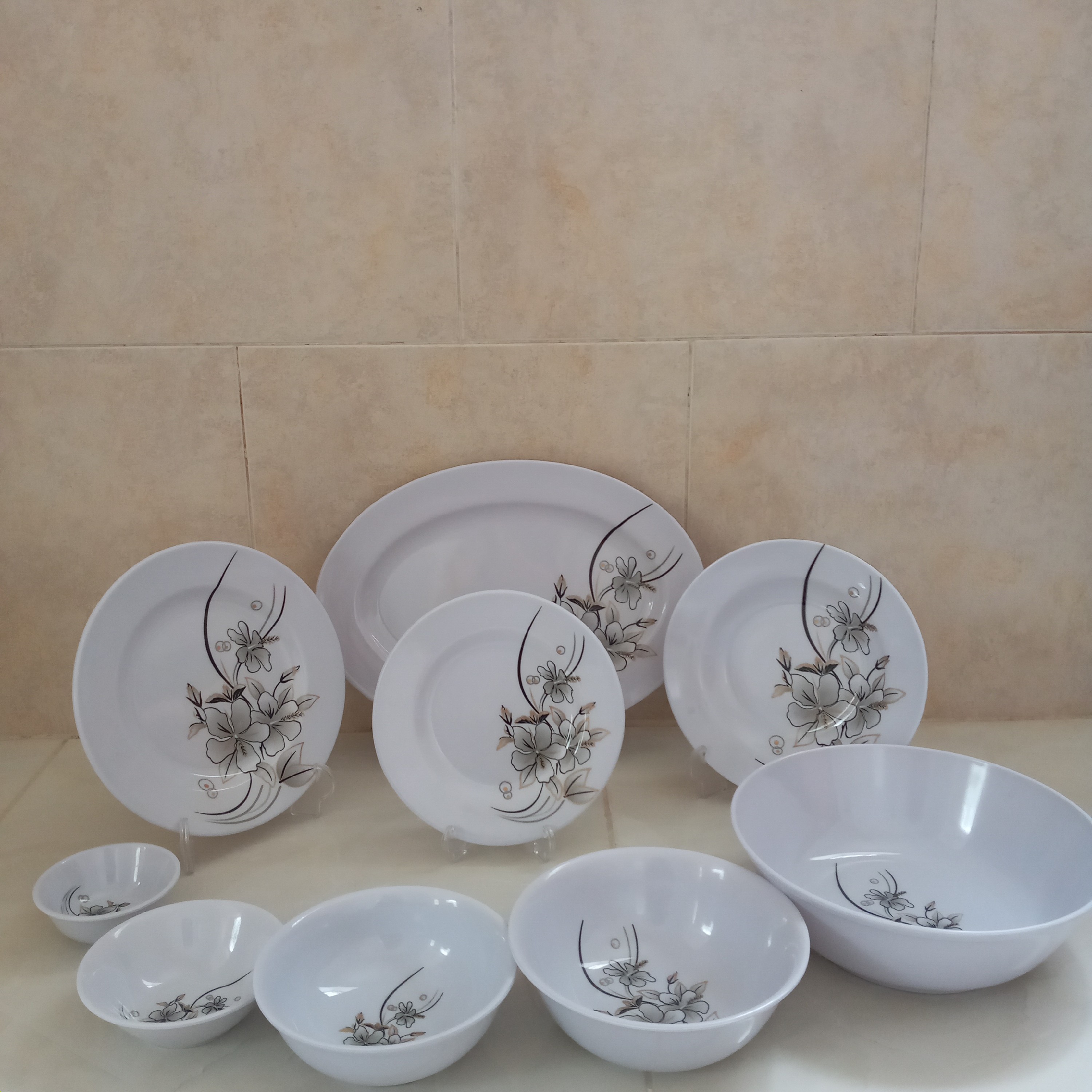 سرویس ملامین 39 پارچه 6 نفره مارک سپید یزد دارای استاندارد جنس درجه یک تولید کارخانه یزد جنس بسیار عالی طرح نقره ای مبلمونسرا مدل 290628