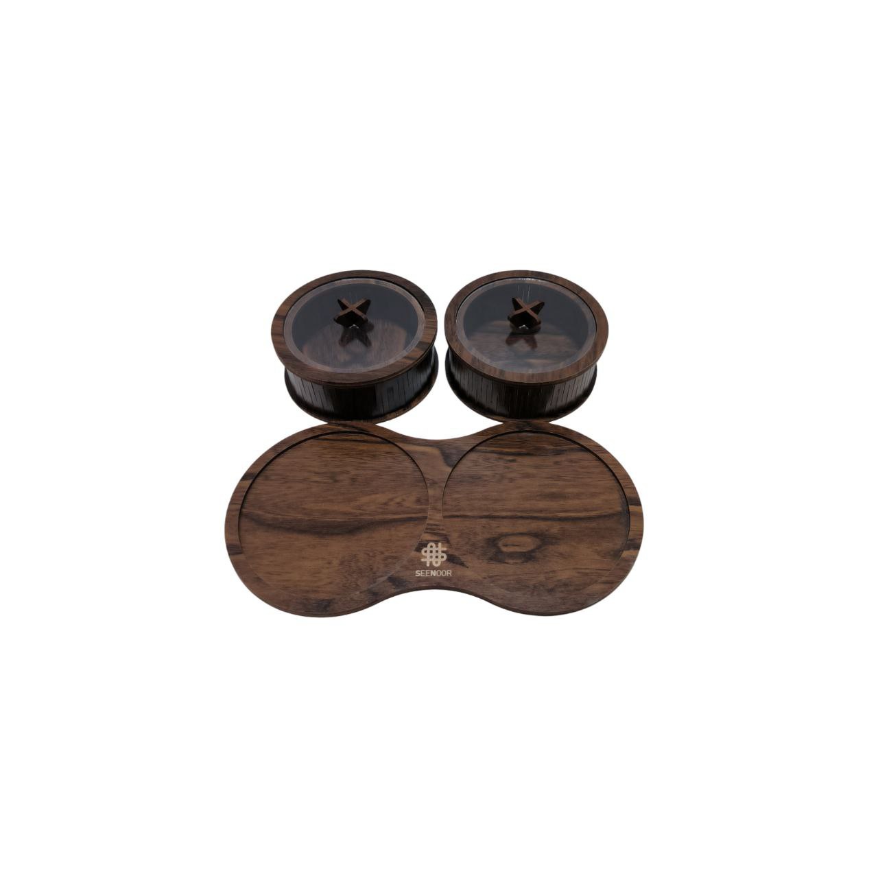 تی باکس، شکلات خوری، سینی و برج آجیل چوبی متحرک. ظرف دو تایی و گرد با درب شفاف. طرح جنگلی. یک هدیه و کادو مناسب. کد 721 مبلمونسرا مدل 272312