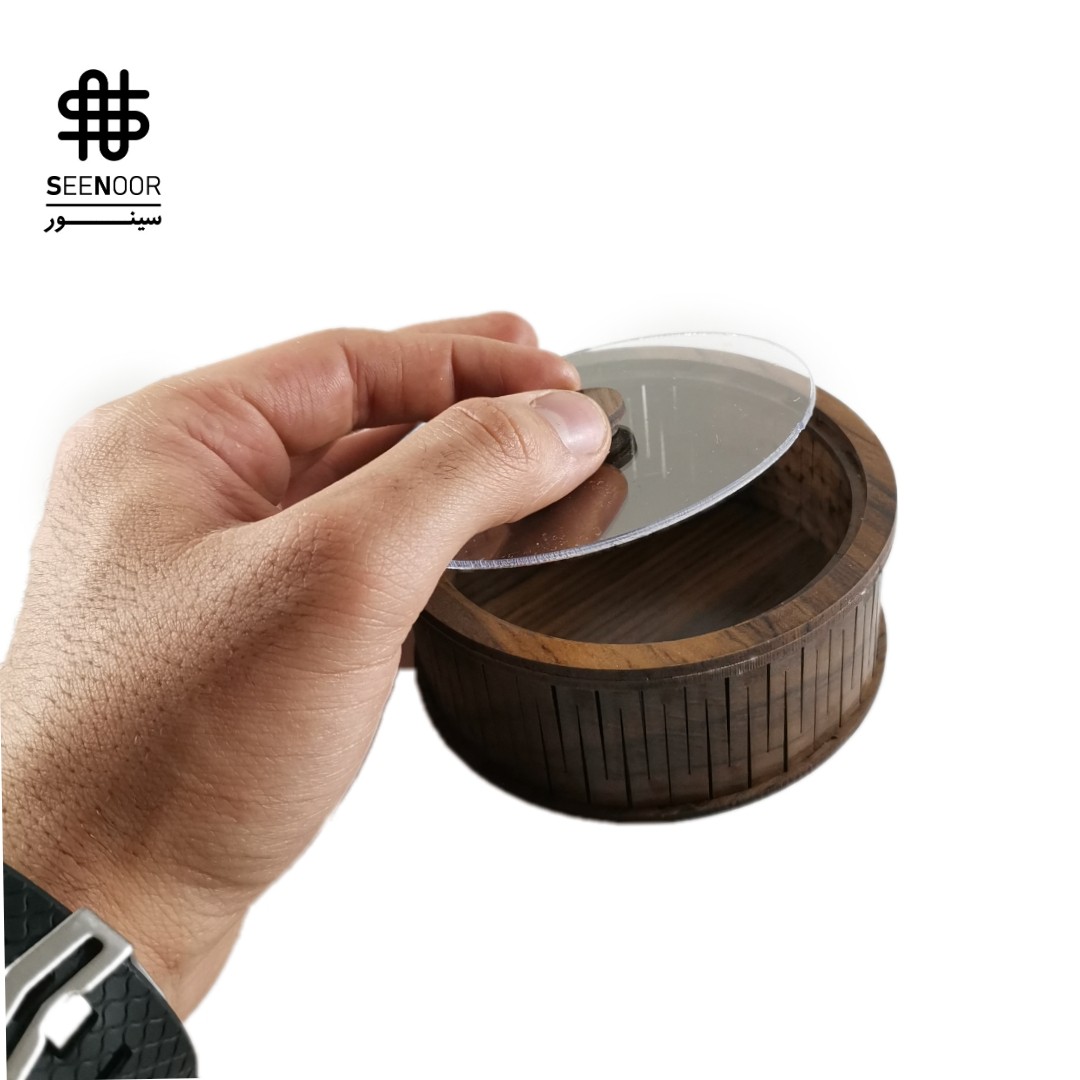 قندان، تی باکس، شکلات خوری و آجیل خوری چوبی. ظرف تک و گرد با درب شفاف. طرح جنگلی. یک هدیه و کادو مناسب. کد 711 مبلمونسرا مدل 272319