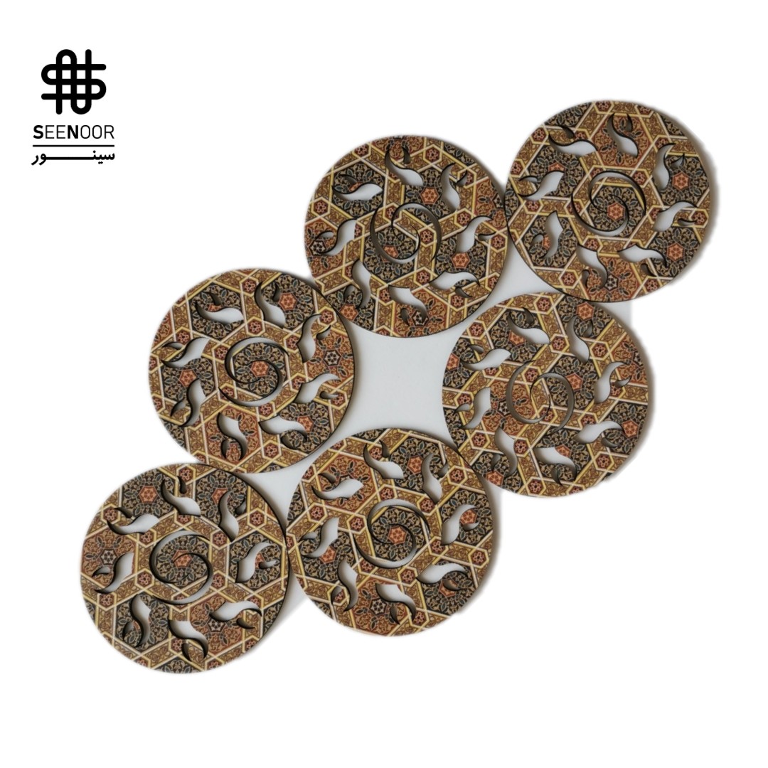 زیر لیوانی قطر 8 سانت دو رو طرح خورشید چوبی سینور. ام دی اف طرح مینا. مقاوم در برابر آب و حرارت. مناسب هدیه و کادو. مبلمونسرا مدل 297596