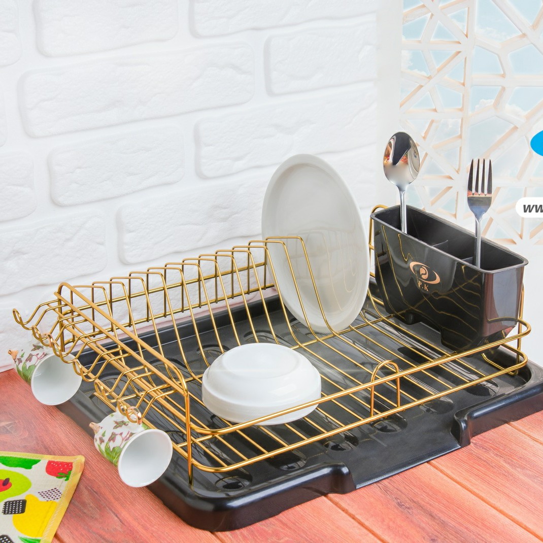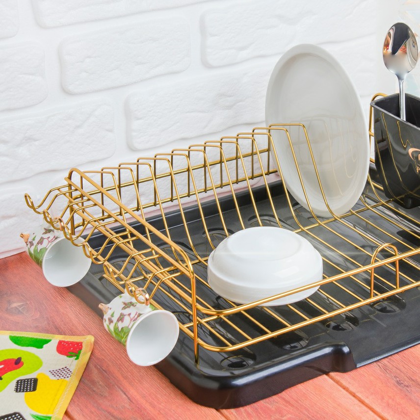 جاظرفی مدل غزال دو رنگ ترکیب مشکی طلایی رنگ جاظرفی استیل طلایی رنگ جاقاشقی و سینی مشکی دارای آویز لیوان