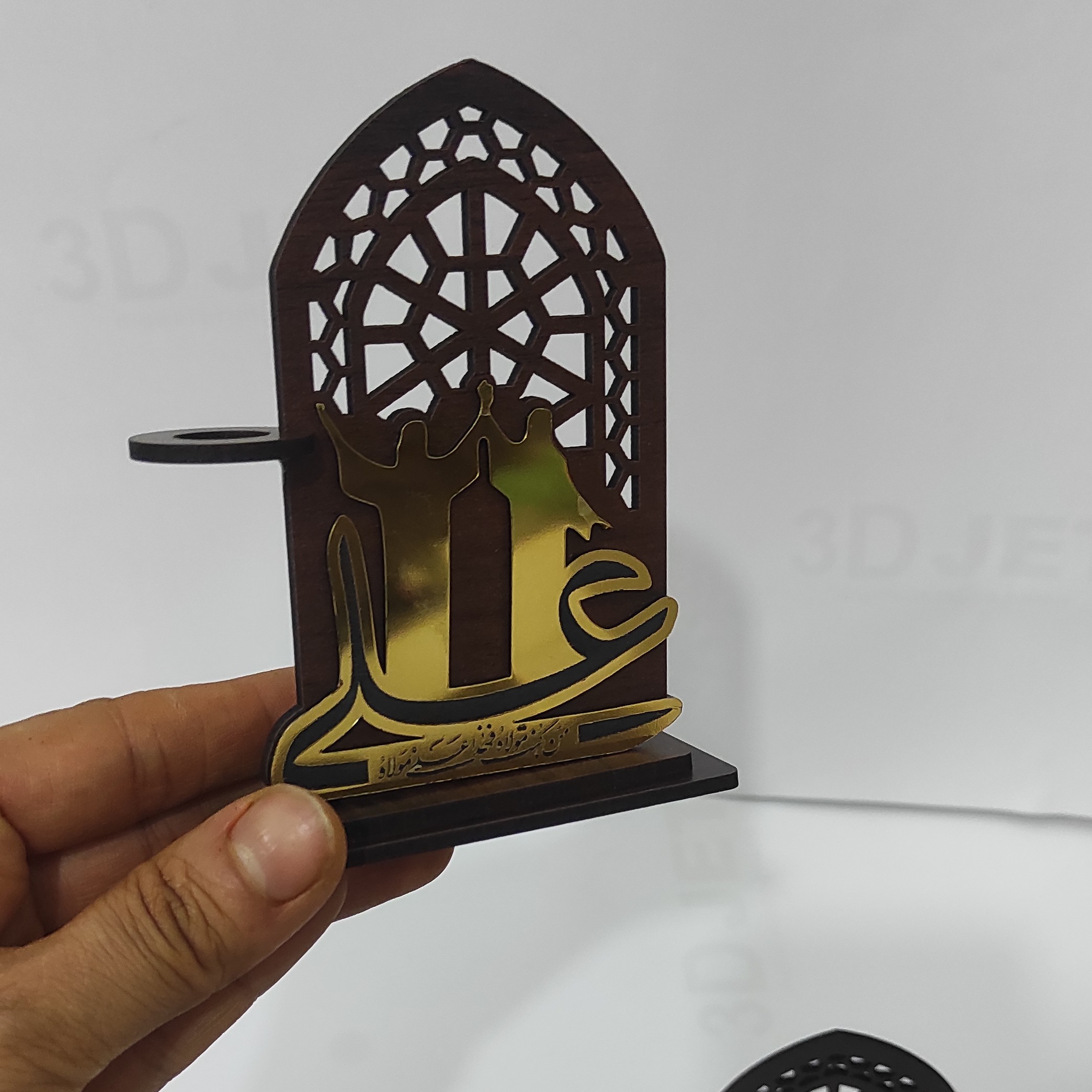 هدیه عید غدیر از جنس ام دی اف و مولتی استایل براق ارتفاع 10سانت رنگ گردویی