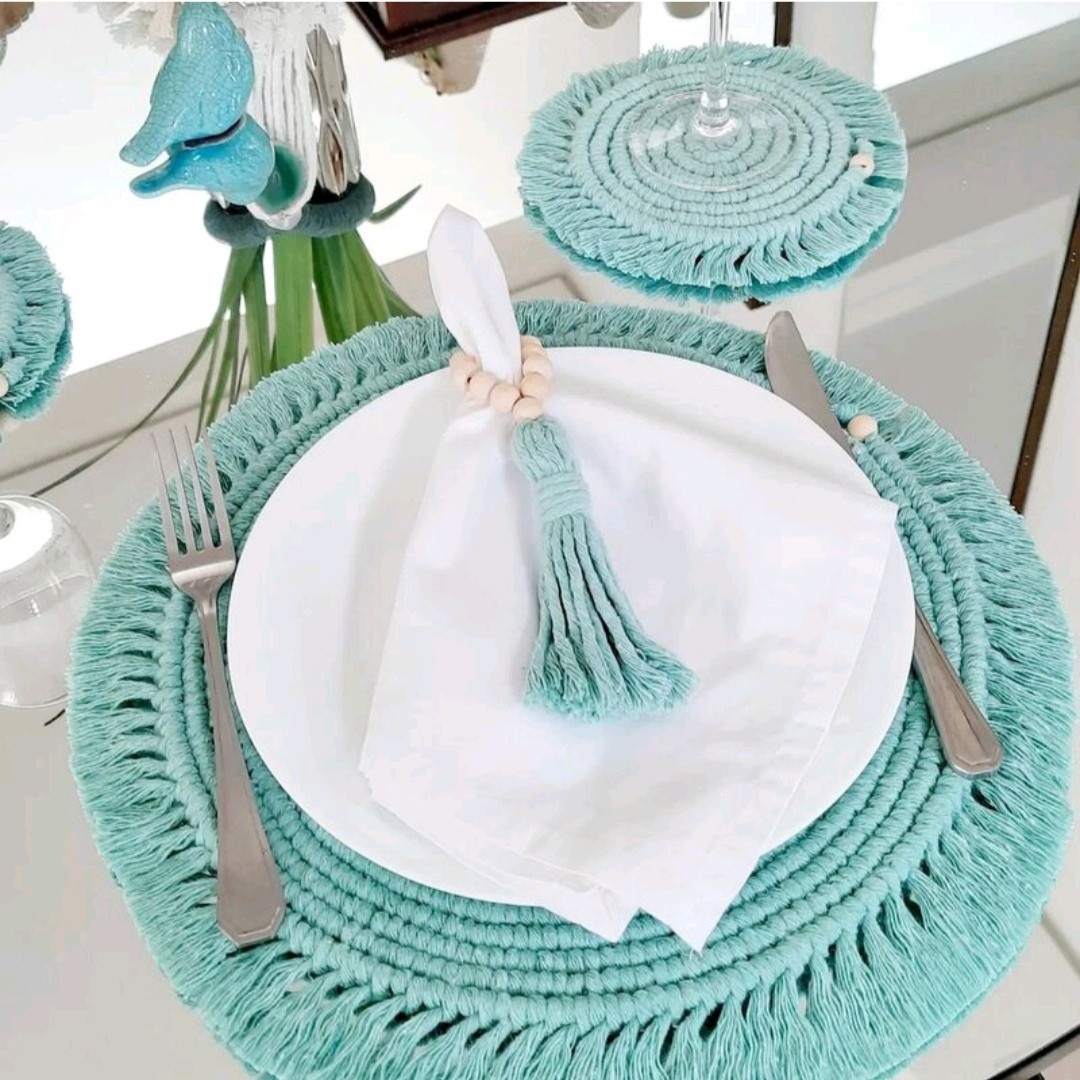 ست پذیرایی ۳تکه مکرومه قطر زیربشقابی ۳۰ سانت قطر زیر لیوانی ۱۵ سانت به همراه منگوله مخصوص دستمال هر سه با هم فقط : ۲۰۰ هزار تومان در رنگ دلخواه