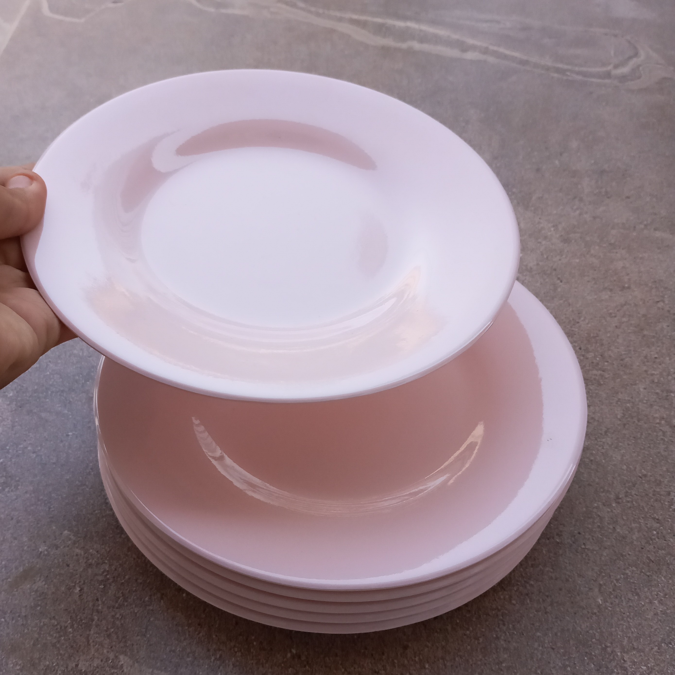 بشقاب برنج خوری ملامین طرح تک رنگی صورتی مارک یزد ملامین شیرکوه اصلی دارای استاندارد مواد درجه یک تعداد شش عددی سایز 23 لطفا به سایز بشقاب دقت بفرمایید جنس بسیار عالی مارک اصلی تولید کارخانه یزد