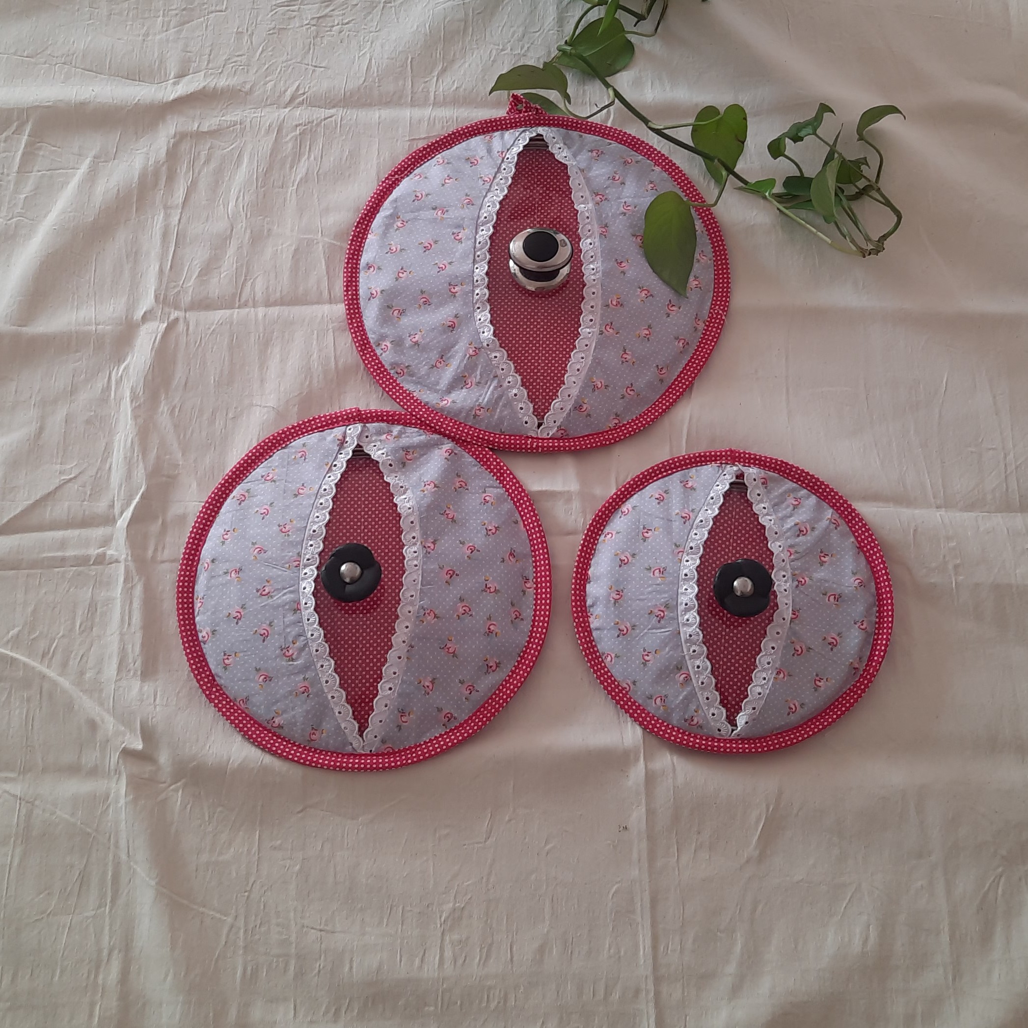 جنس رویه کتان نخ بوده که با دولایه متقال مطلسه شده وتزیین تور نخی درجه یک ونوار اریب کتان نخ دوخت شده است
