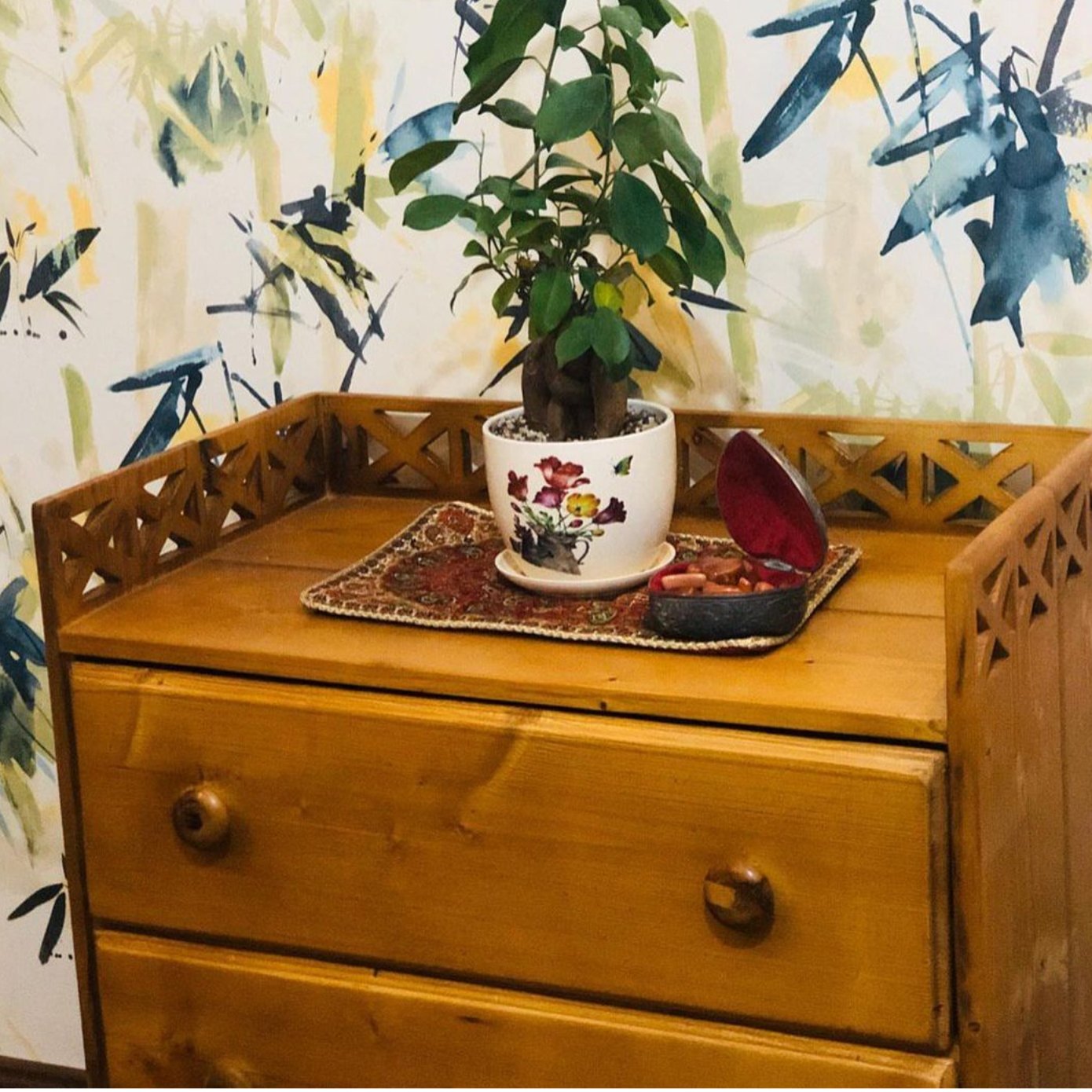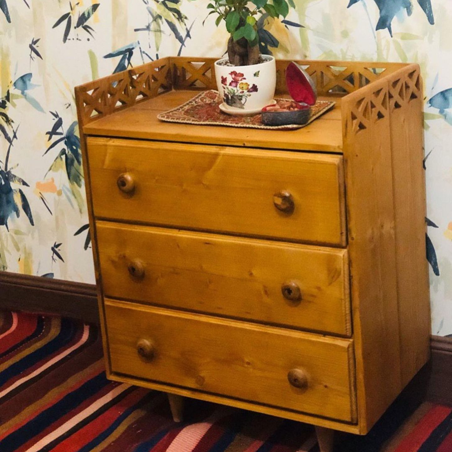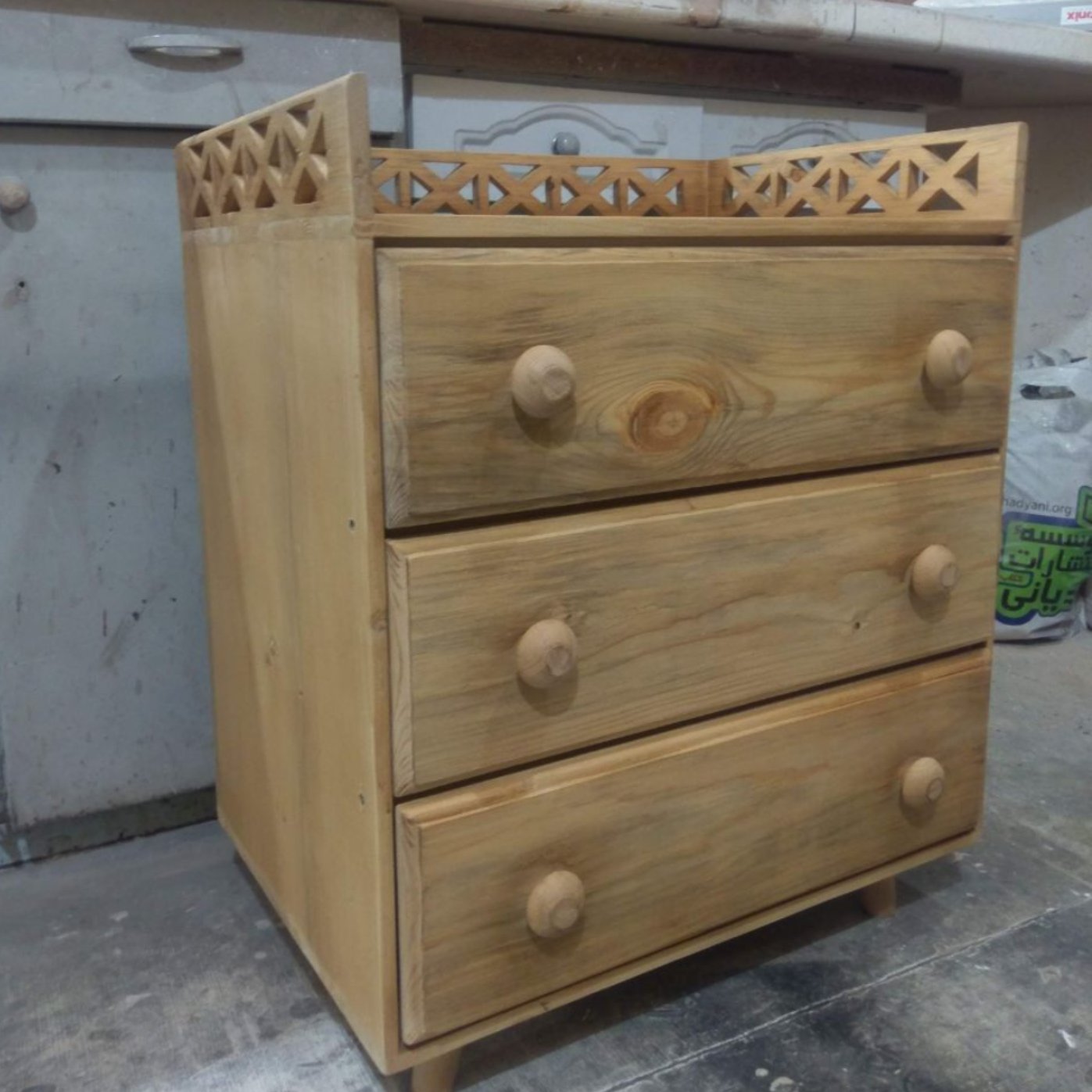 این محصول تمام چوب و کاملن دست ساز میباشد. لبه های مشبک کاری شده قسمت بالا جلوه ای زیبا و سنتی به محوطه میبخشد و مناسب قرار دادن وسایل همچون کنترل لوازم الکترونیکی، روزنامه، کتاب، وسایل پذیرایی و.. است علاوه بر دراور نظم دهنده مناسب استفاده به عنوان میز کنار مبل میباشد توضیح در مورد رنگ محصول: اجرای رنگ روشن تا تیره بر روی محصول به درخواست مشتریان محترم مقدور میباشد. بر روی این محصول علاوه بر رنگ مخصوص چوب، عملیات رنگ کاری سیلر و کیلر انجام شده و پوششی مقاوم جهت محافظت از آن در برابر هوا، رطوبت، حشرات و... ایجاد کرده است. این پوشش علاوه بر خاصیت محافظت کنندگی بالا؛ موجب استحکام بیشتر محصول شده و به زیبایی و لطافت کار می افزاید. در صورت درخواست مشتریان محترم امکان اعمال پوشش رنگ رزینی بر روی محصول وجود دارد. این پوشش با ایجاد یک لایه شفاف و شیشه ای بر سطح کار علاوه بر افزایش فوق العاده استحکام و مقاومت محصول در برابر نفوذ رطوبت و خوردگی توسط حشرات و پوسیدگی در مجاورت هوا و... تماس با محصول را لذت بخش و زیبایی ظاهری آن را دو چندان میکند. هزینه اجرای پوشش رزینی 35 درصد به قیمت محصول اضافه میکند. از آنجایی که این محصول به درخواست و سفارش مشتریان محترم ساخته میشود ضمن عذرخواهی امکان لغو سفارش وجود ندارد